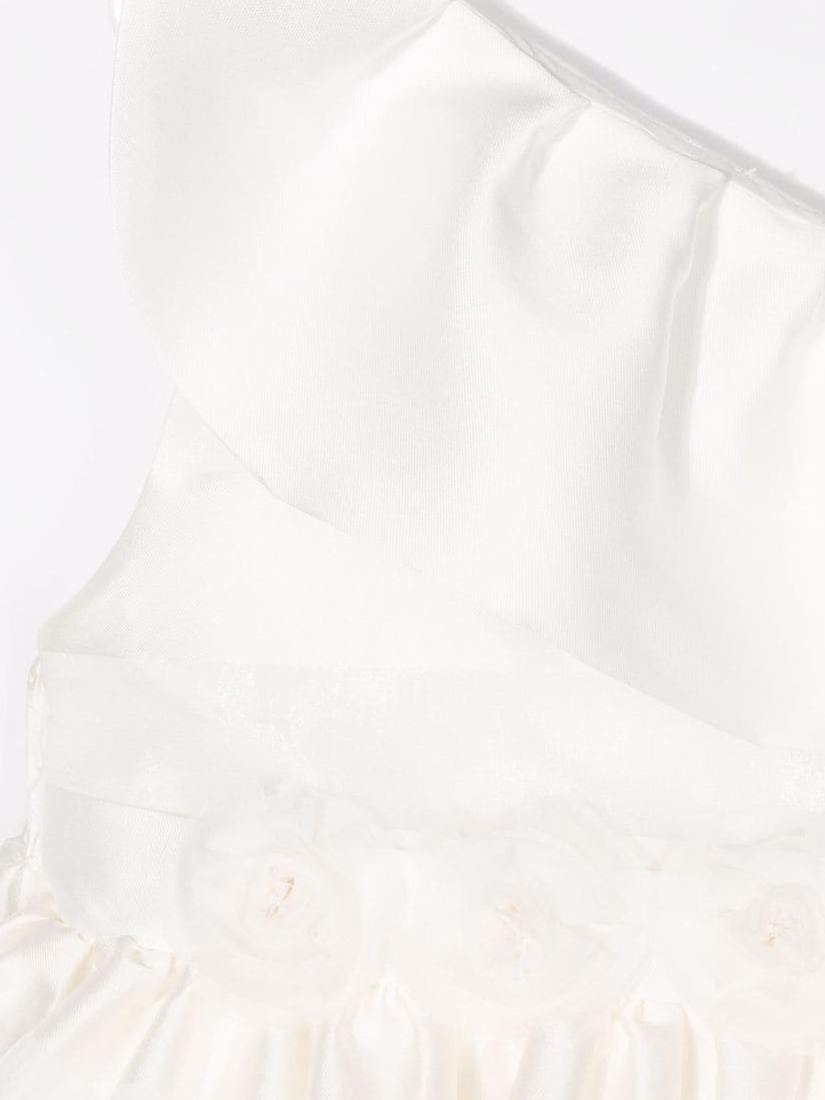 Senza maniche, design asimmetrico, design svasato e dettaglio con ruches.