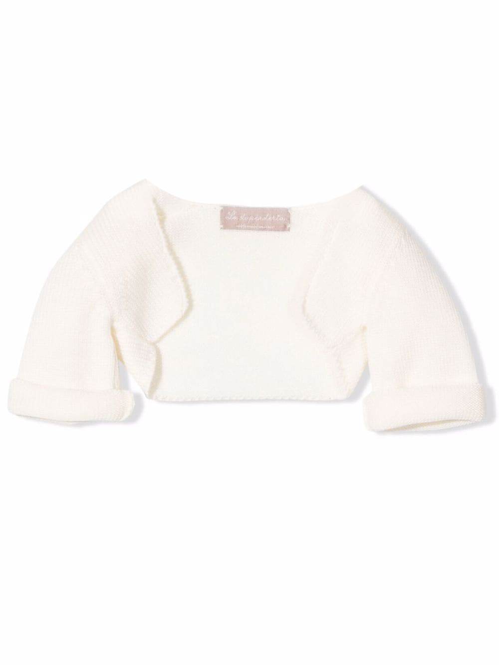 Lavorazione a coste, maniche corte e orli arrotolati. Materiale: cashmere.
