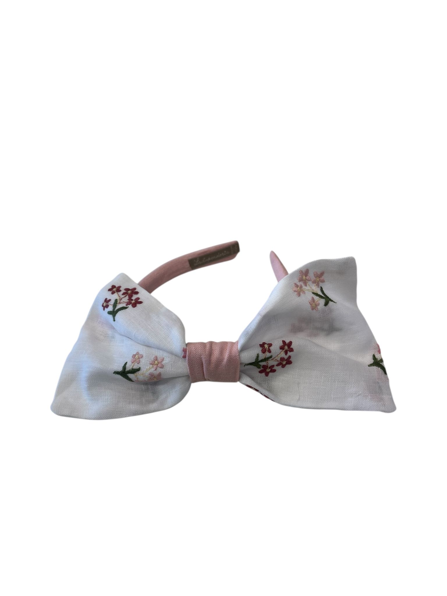 Cerchietto con fiocco bianco e fiorellini cuciti