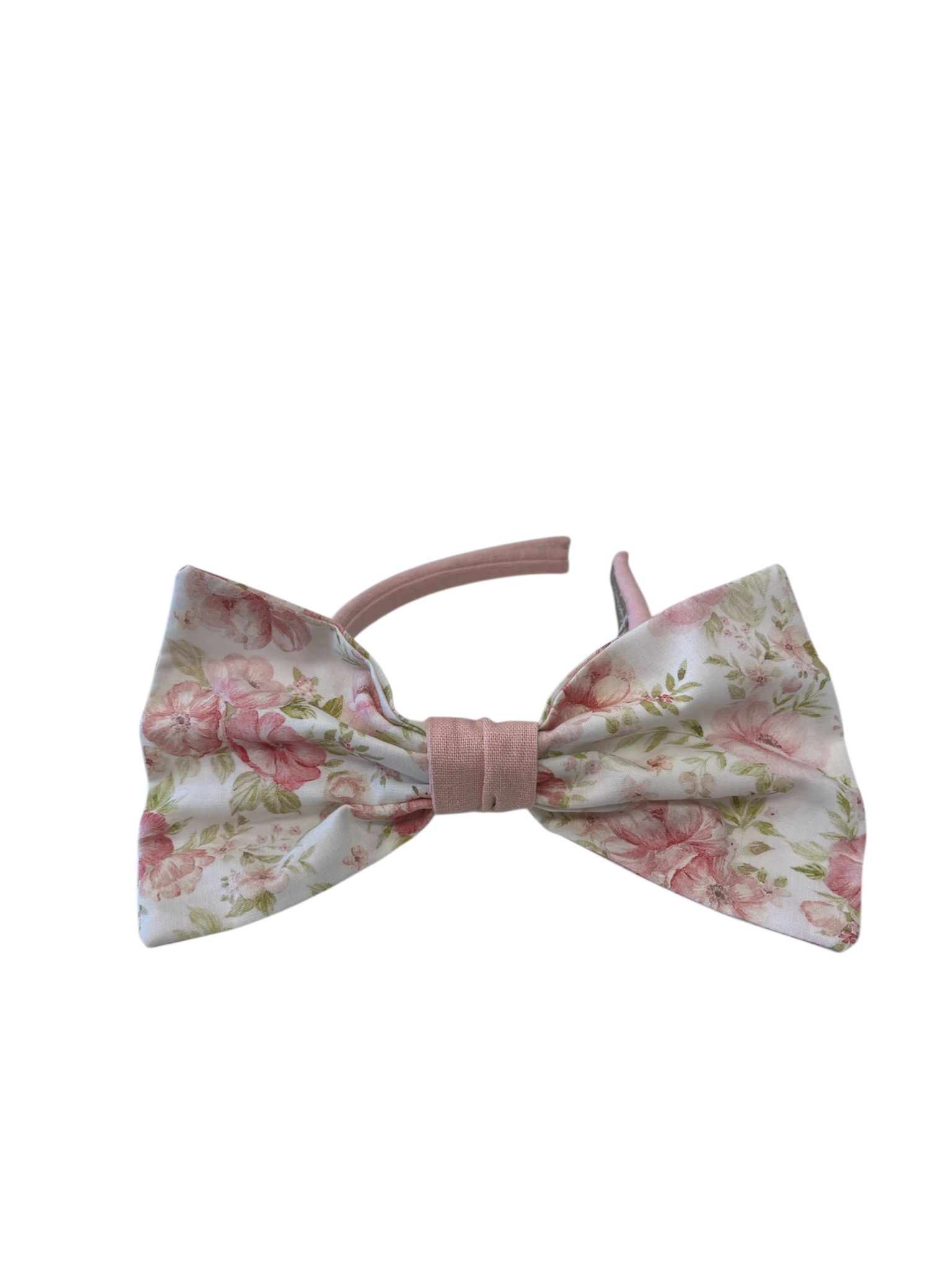 Cerchietto con fiocco , di colore bianco e rosa , stampa a fiori