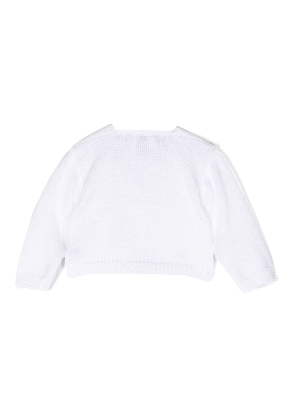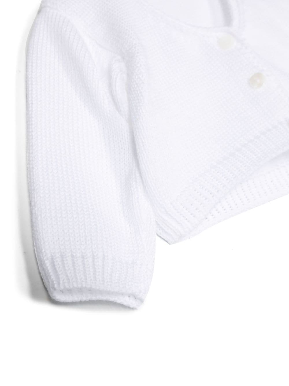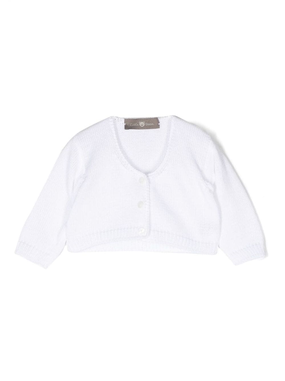 Cardigan in cotone con scollo a V di Little Bear. Modello con struttura in maglia di cotone bianco, scollo a V, chiusura frontale con bottoni, maniche lunghe e orlo dritto.