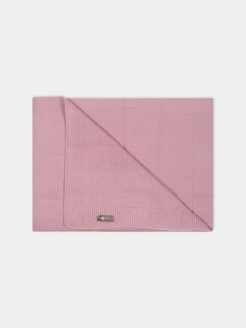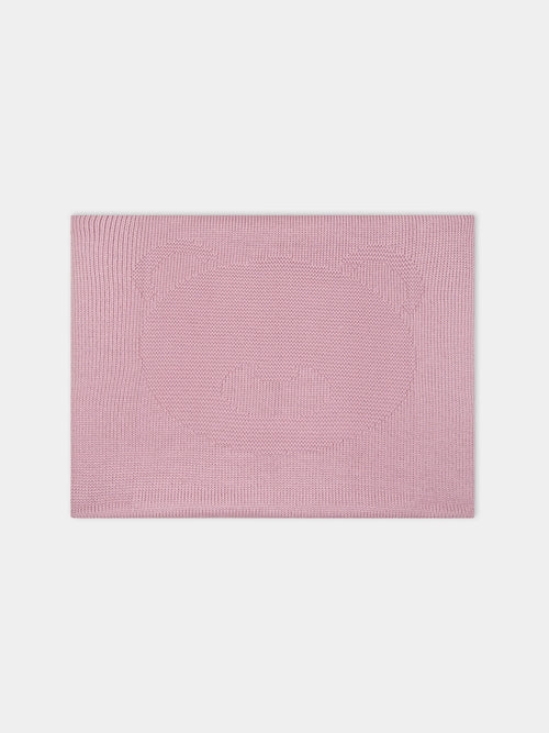 Coperta rosa in lana vergine. E' decorata con orso ricamato rosa a contrasto.