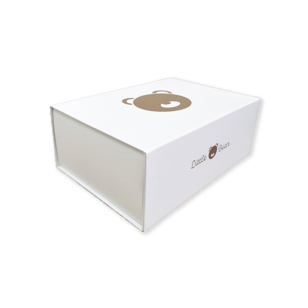 Confezione regalo bianca, dal luxury packaging con logo superiore e frontale.