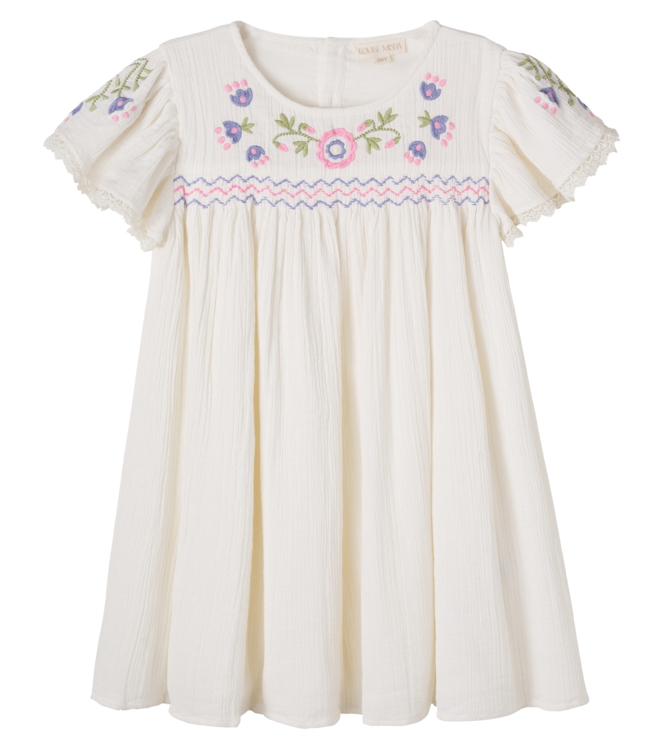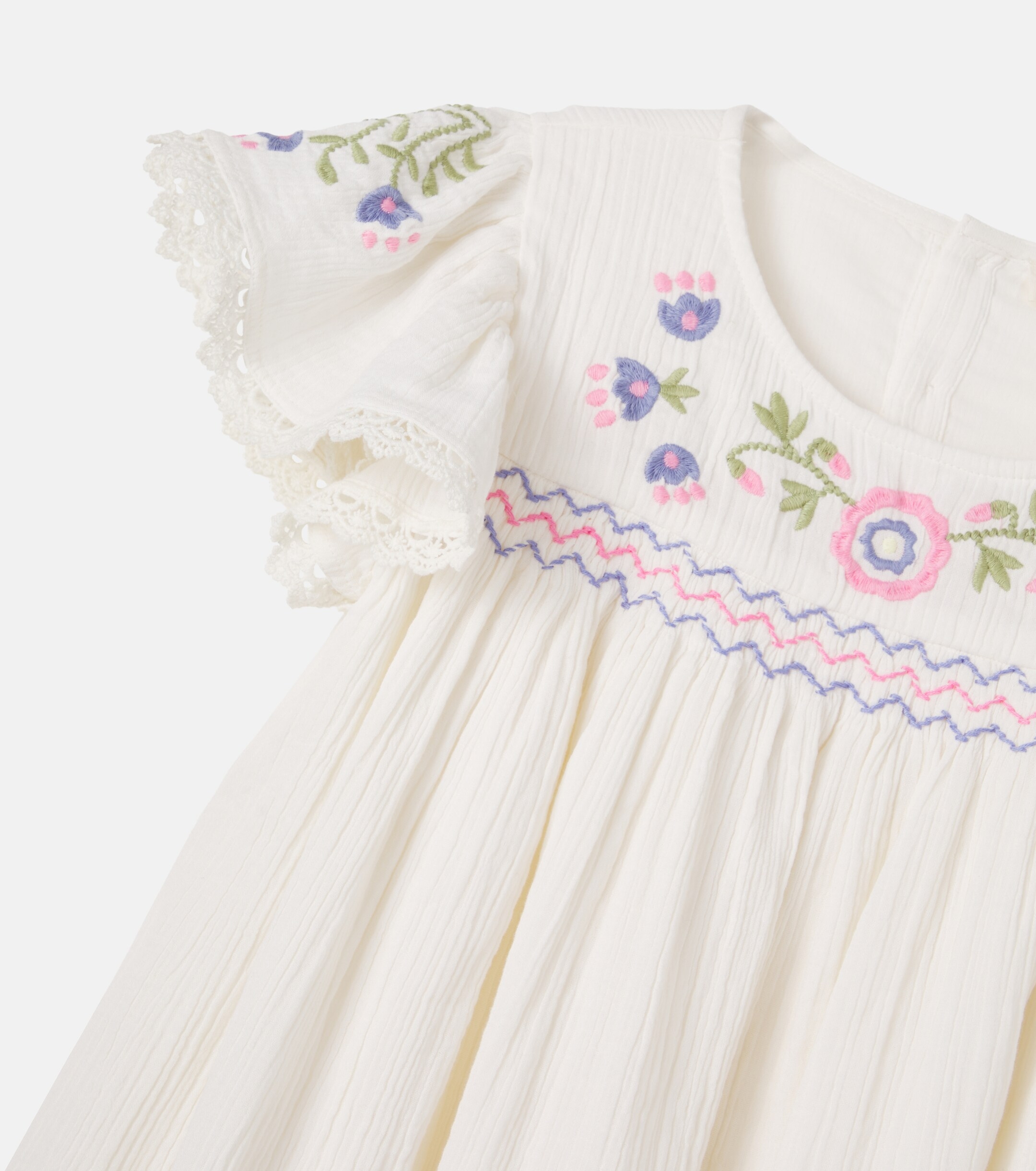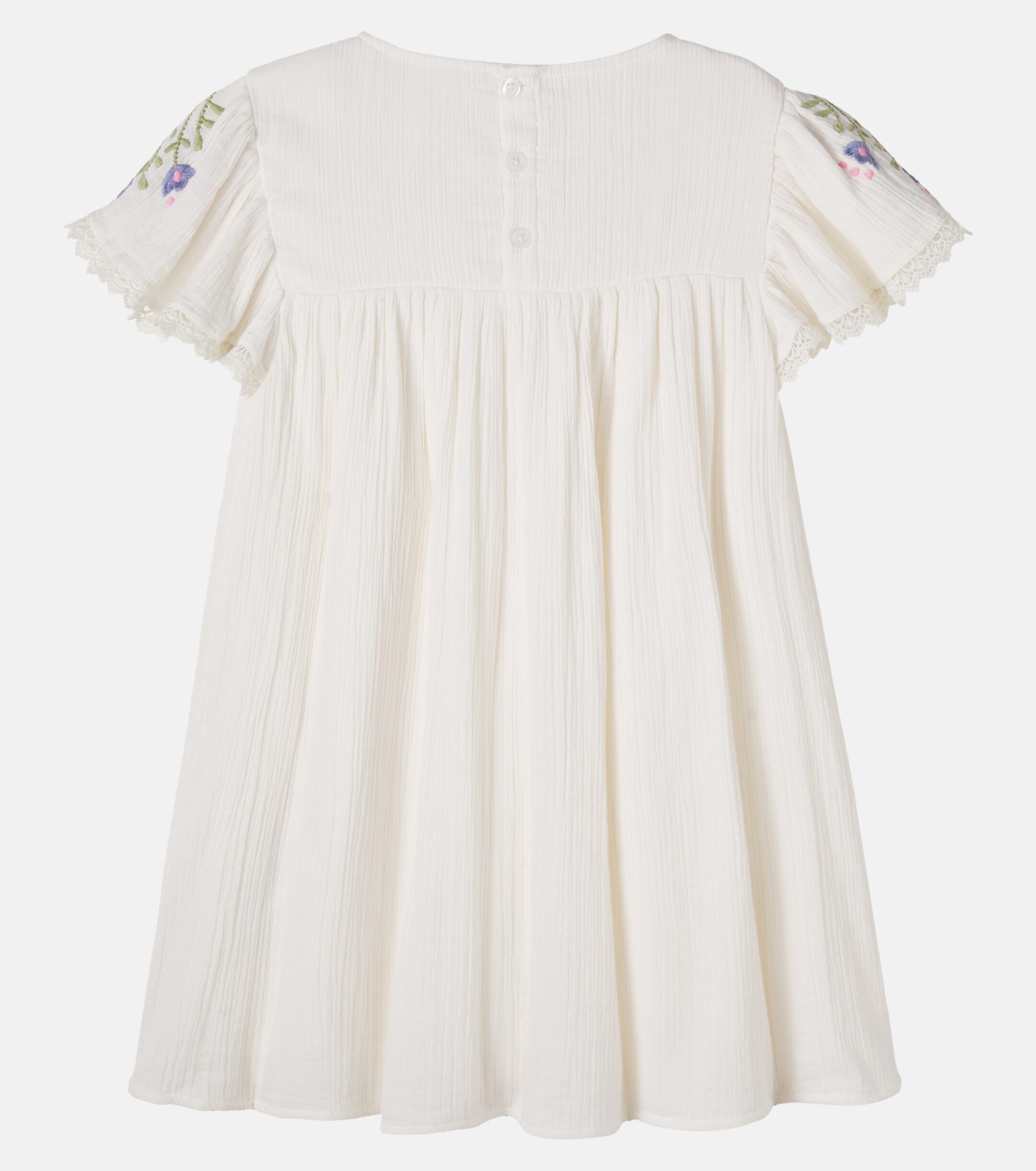 Abito con ricamo, scollo tondo, maniche corte e chiusura posteriore con zip
