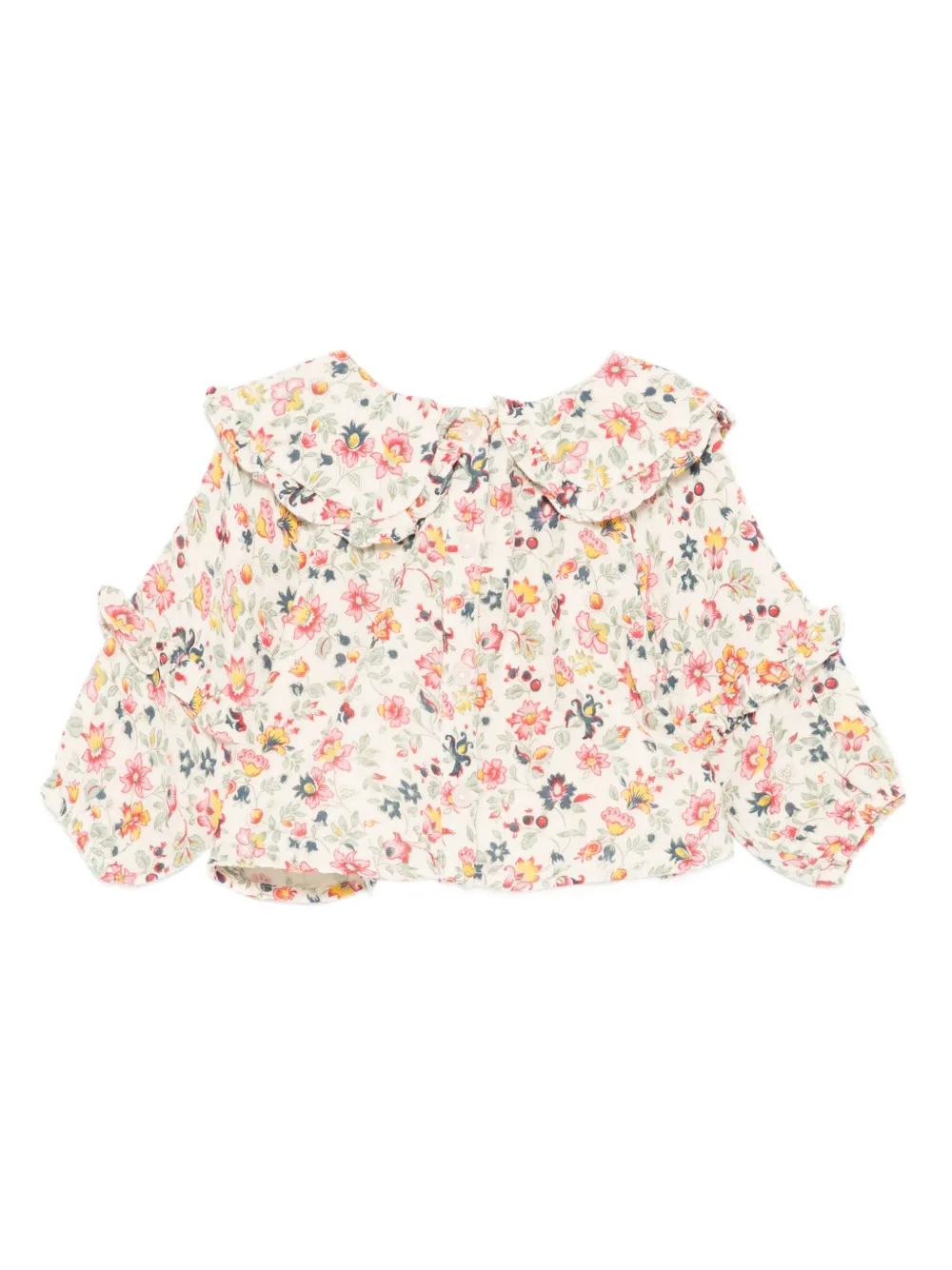 Ampio colletto arricciato maniche a sbuffo con dettagli a balzee polsini elasticizzati
