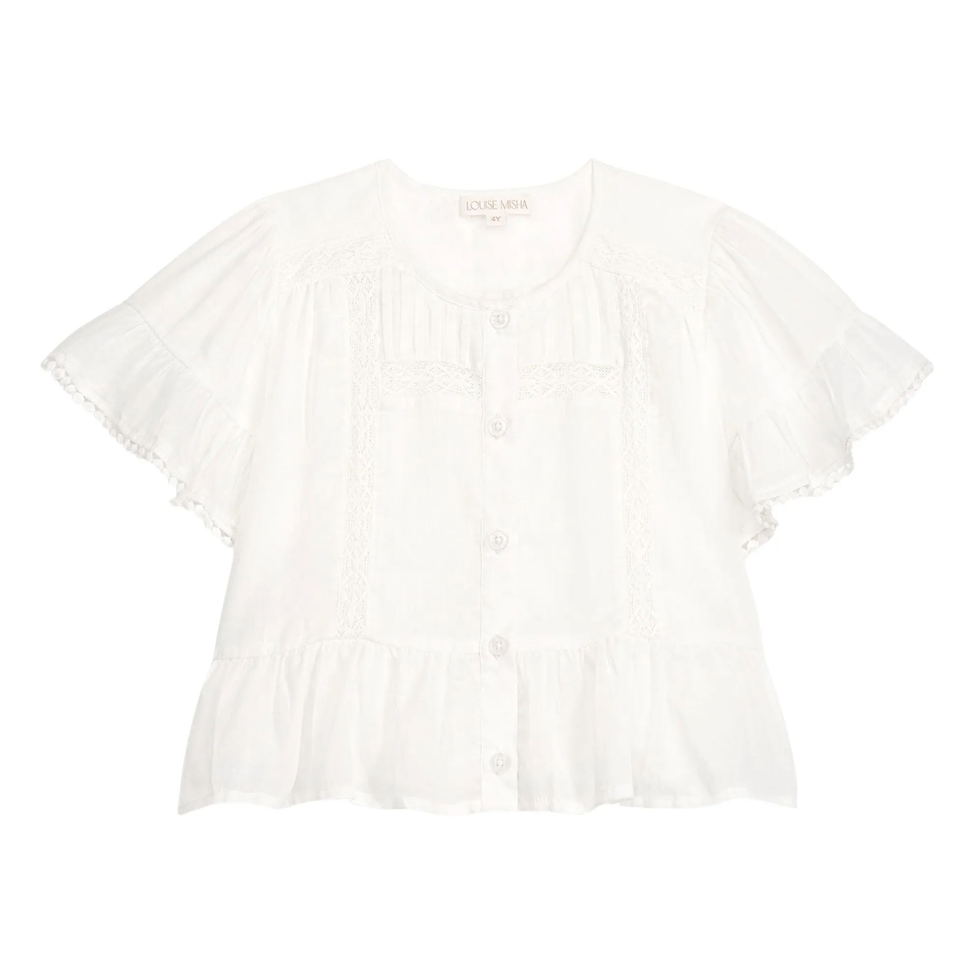Camicia con maniche corte, scollo tondo e chiusura frontale con bottoni