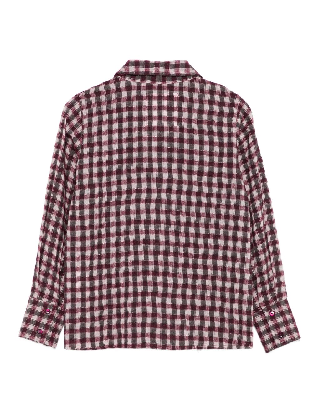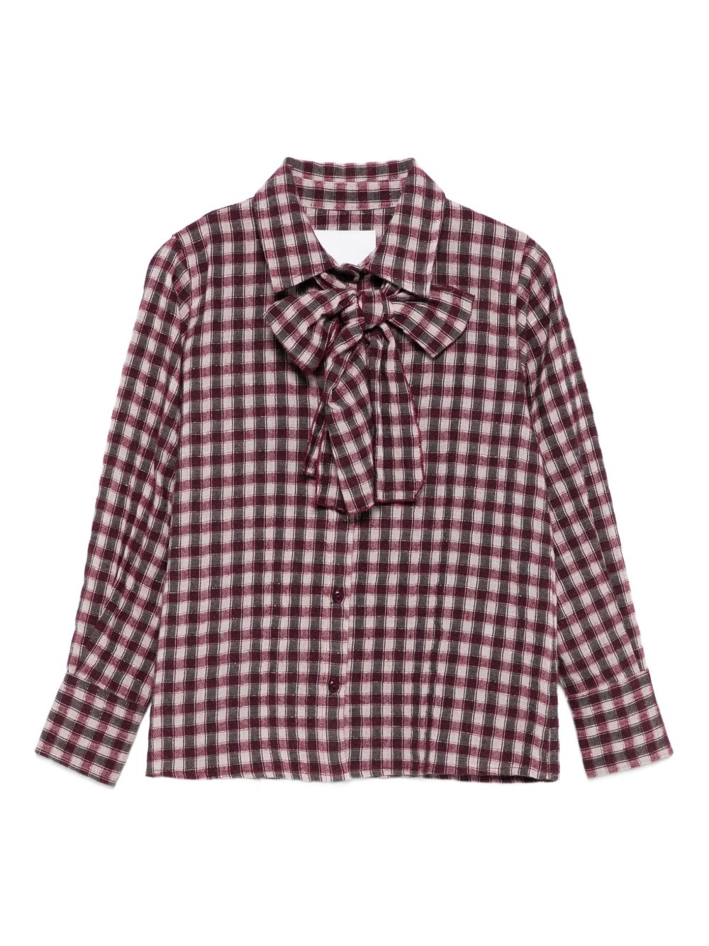 Camicia a quadri bordeaux manica lunga con fiocco al collo