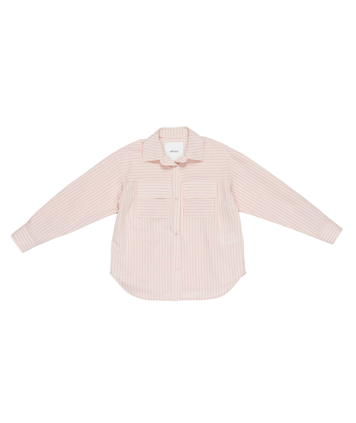 Camicia a righe con tasche con patta sul petto e orlo curvo