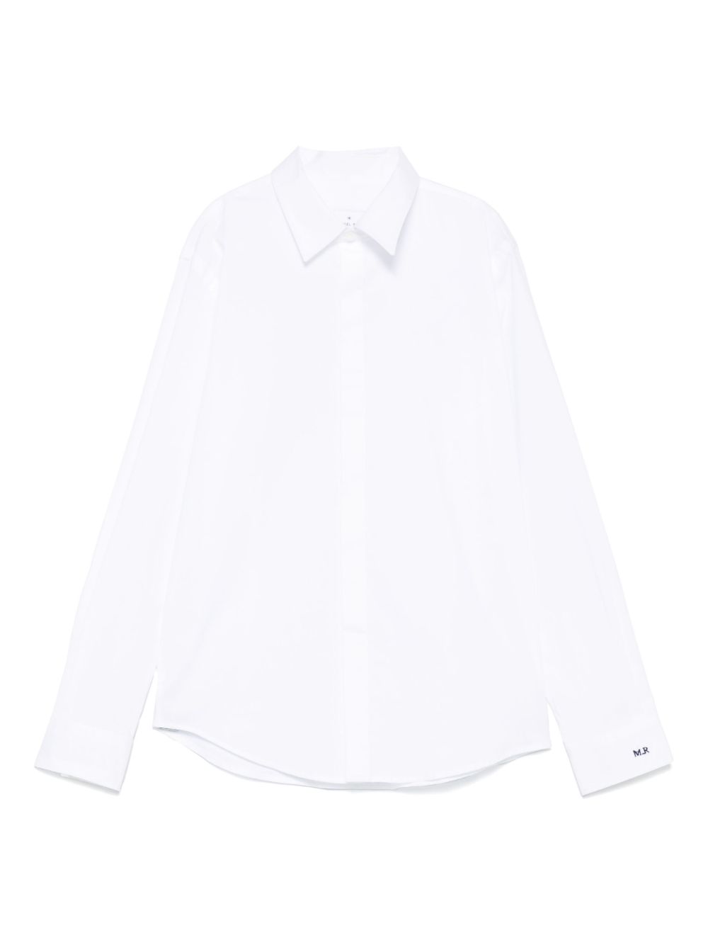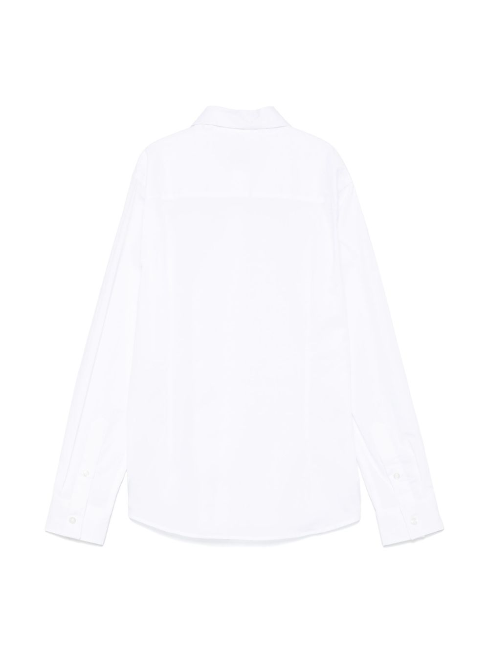 chiusura frontale con bottoni bianchi logo ricamato sulla manica colletto classico maniche della camicia