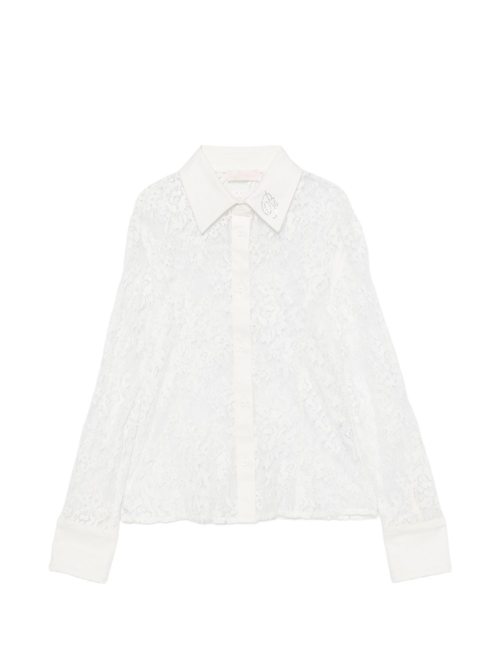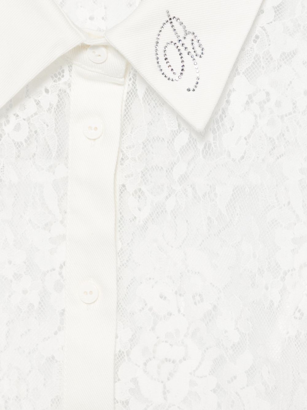 Camicia in merletto con logo con strass
