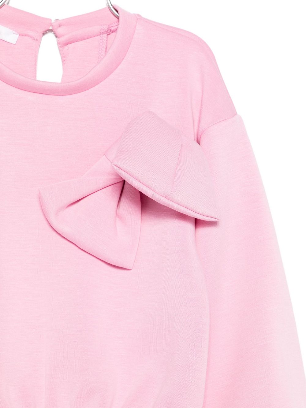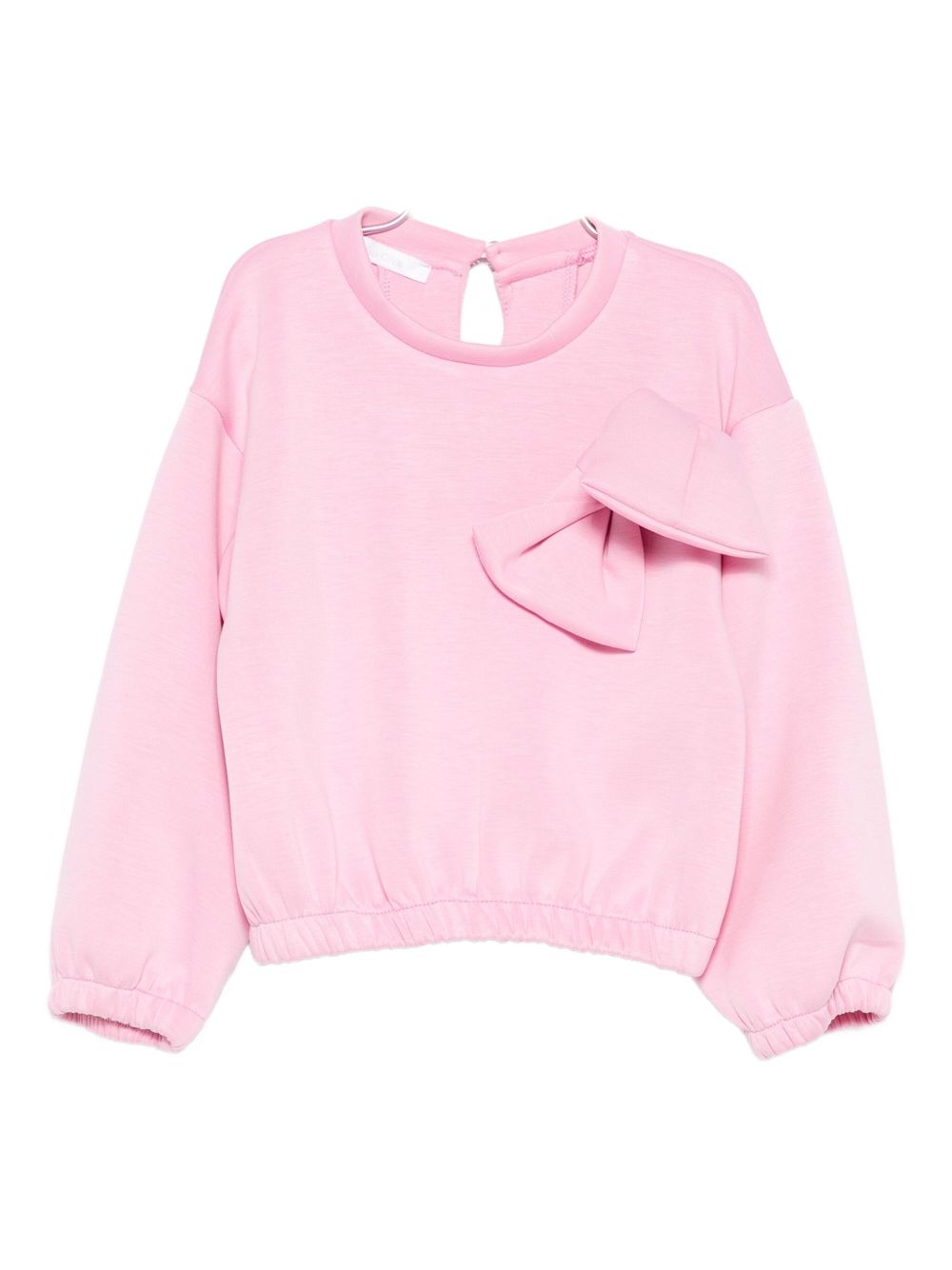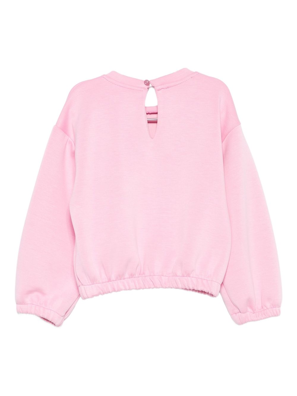 Felpa con applicazione fiocco, modello crop con abbottonatura sul retro