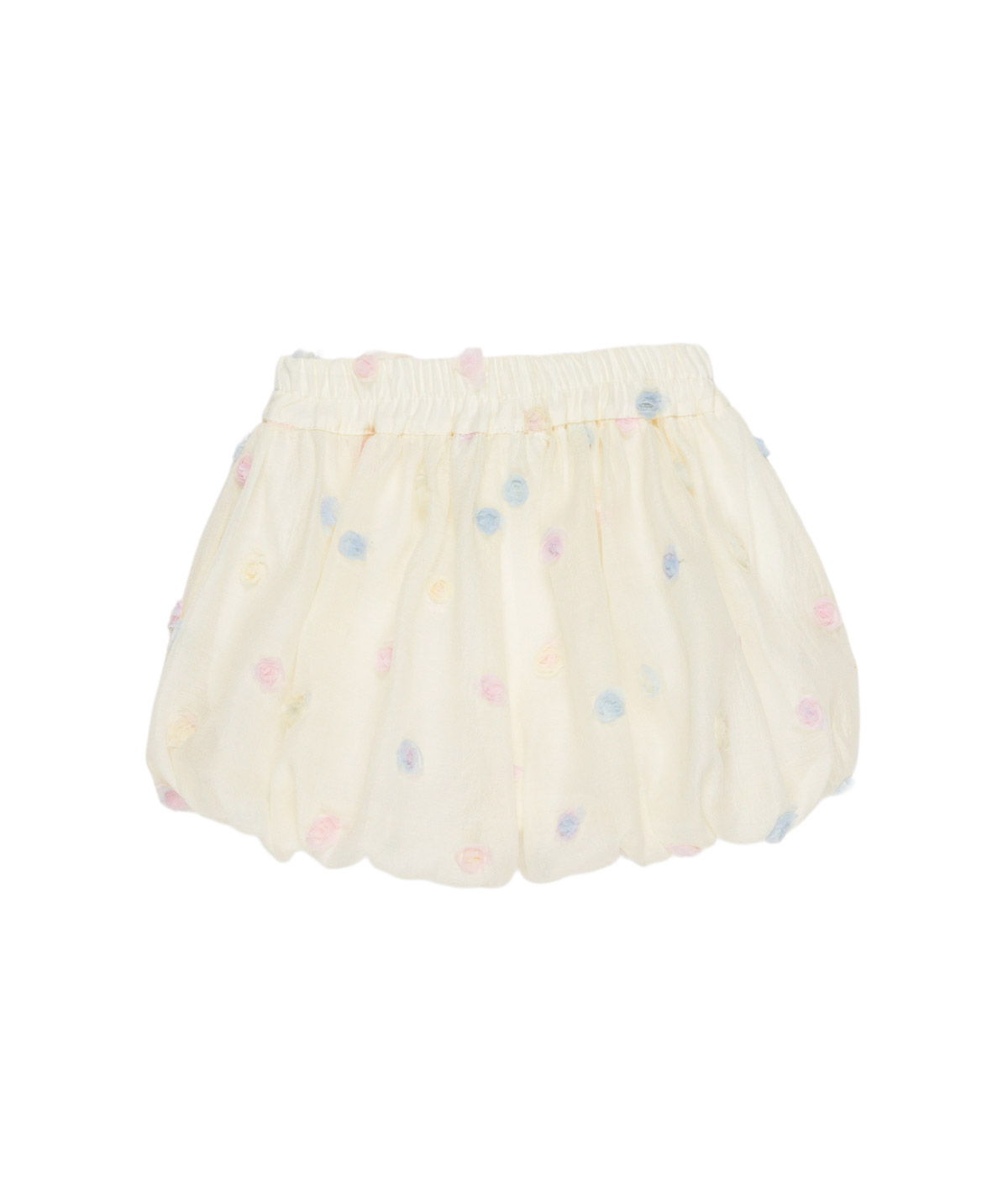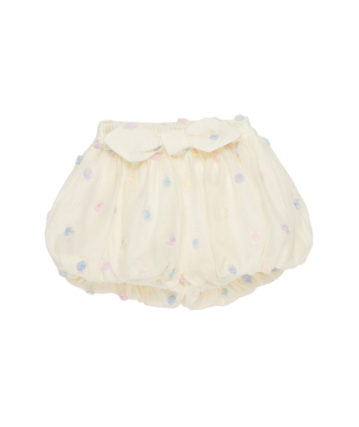 Shorts panna con fiori multicolor applicati.