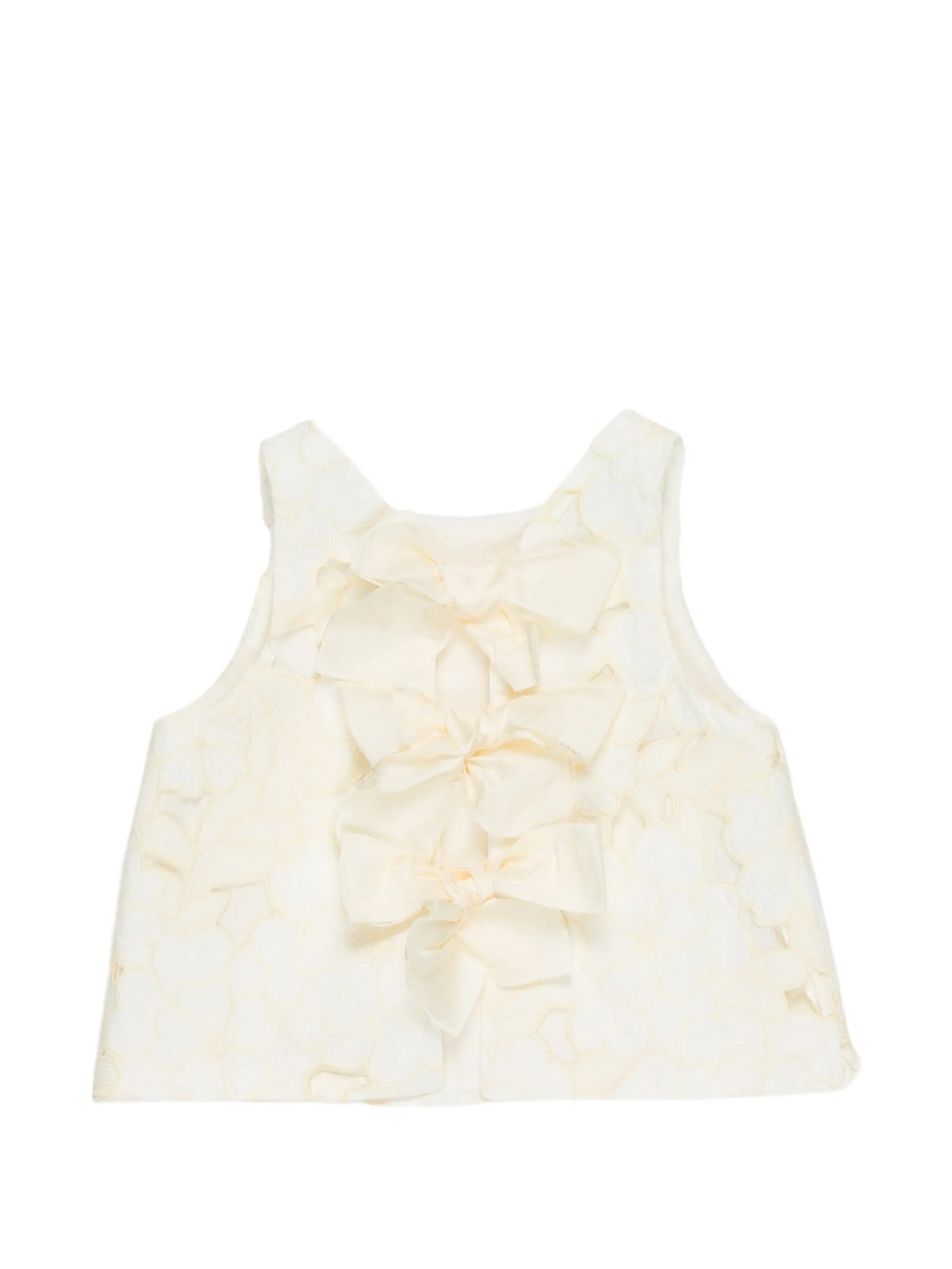 Top decorato con pizzo , e fiocchi sul retro.