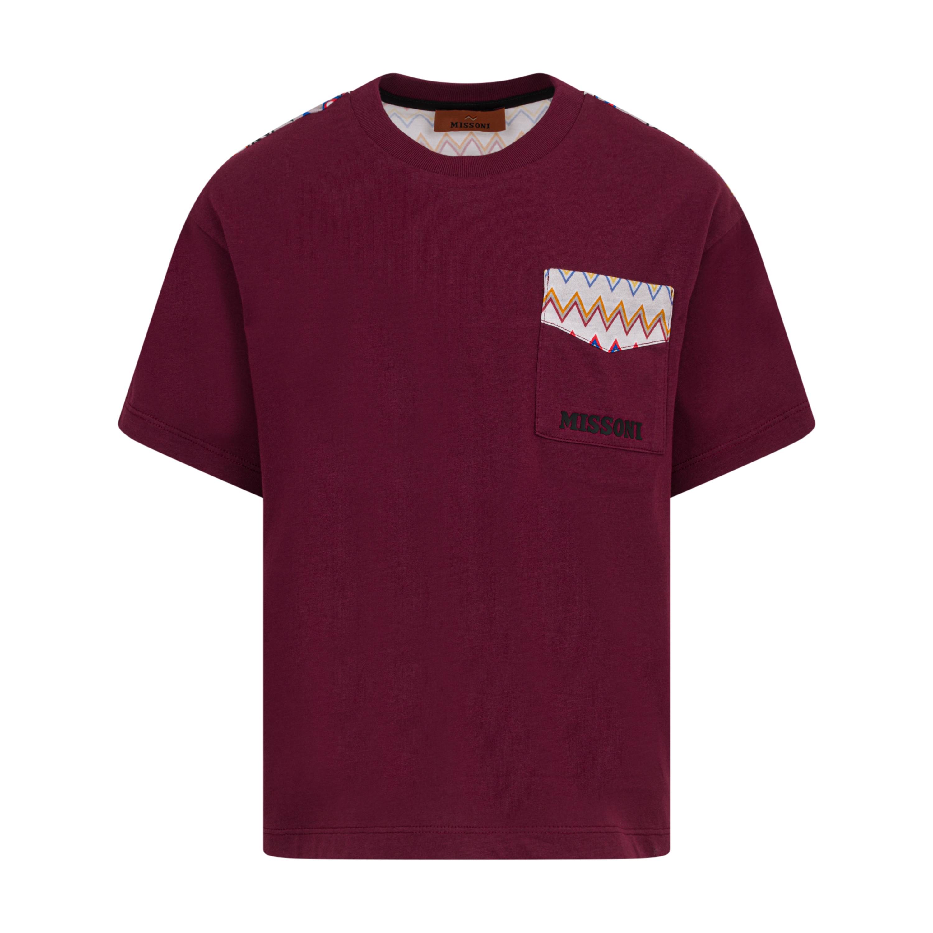 T-shirt con stampa mezza manica stampata sul retro con taschino sul davanti