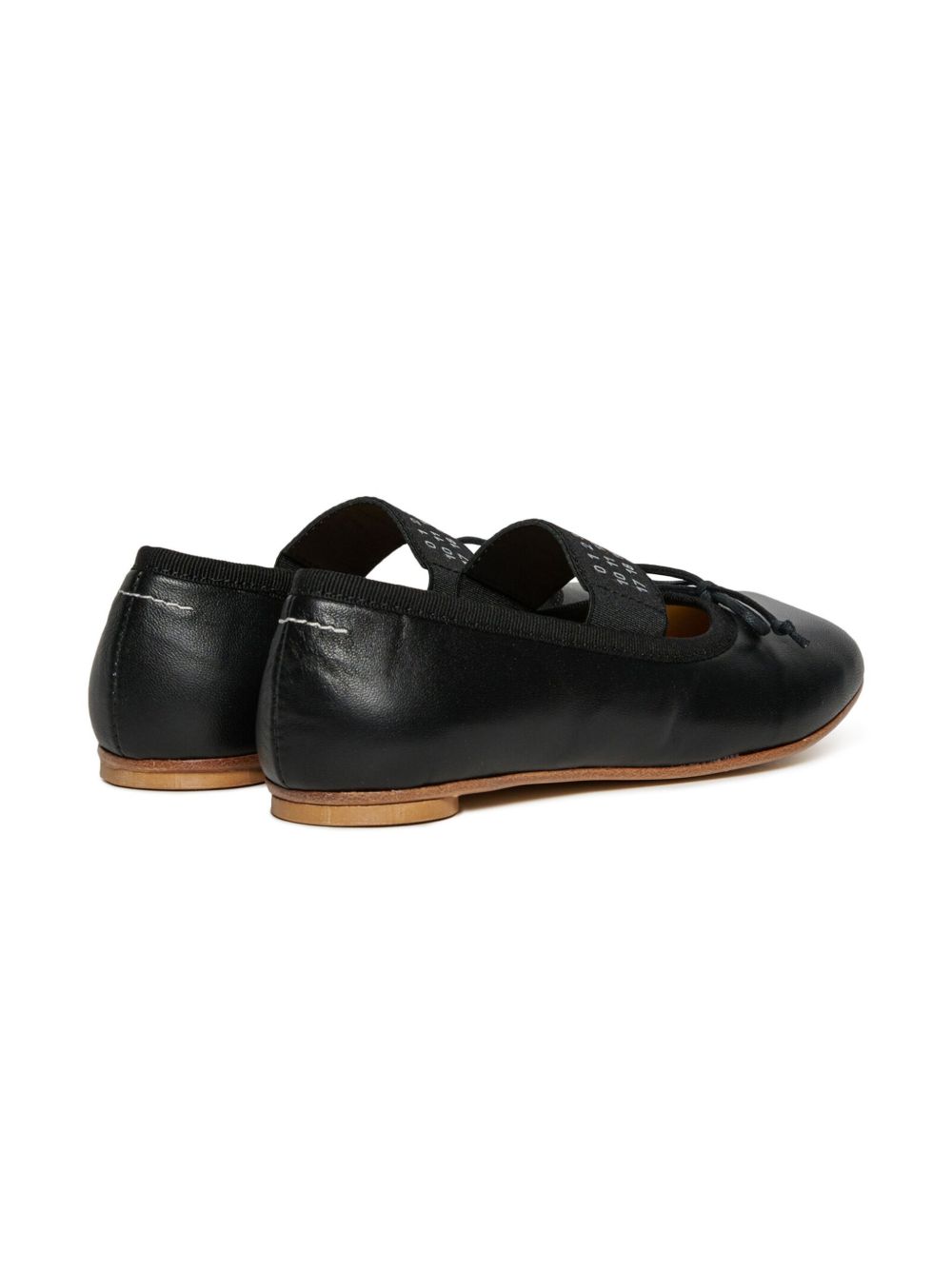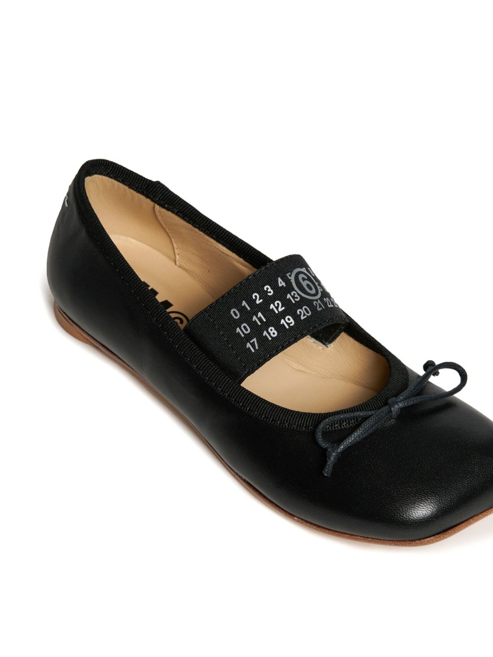 Ballerine in pelle con fiocco e cinturino elasticizzato con logo numerico