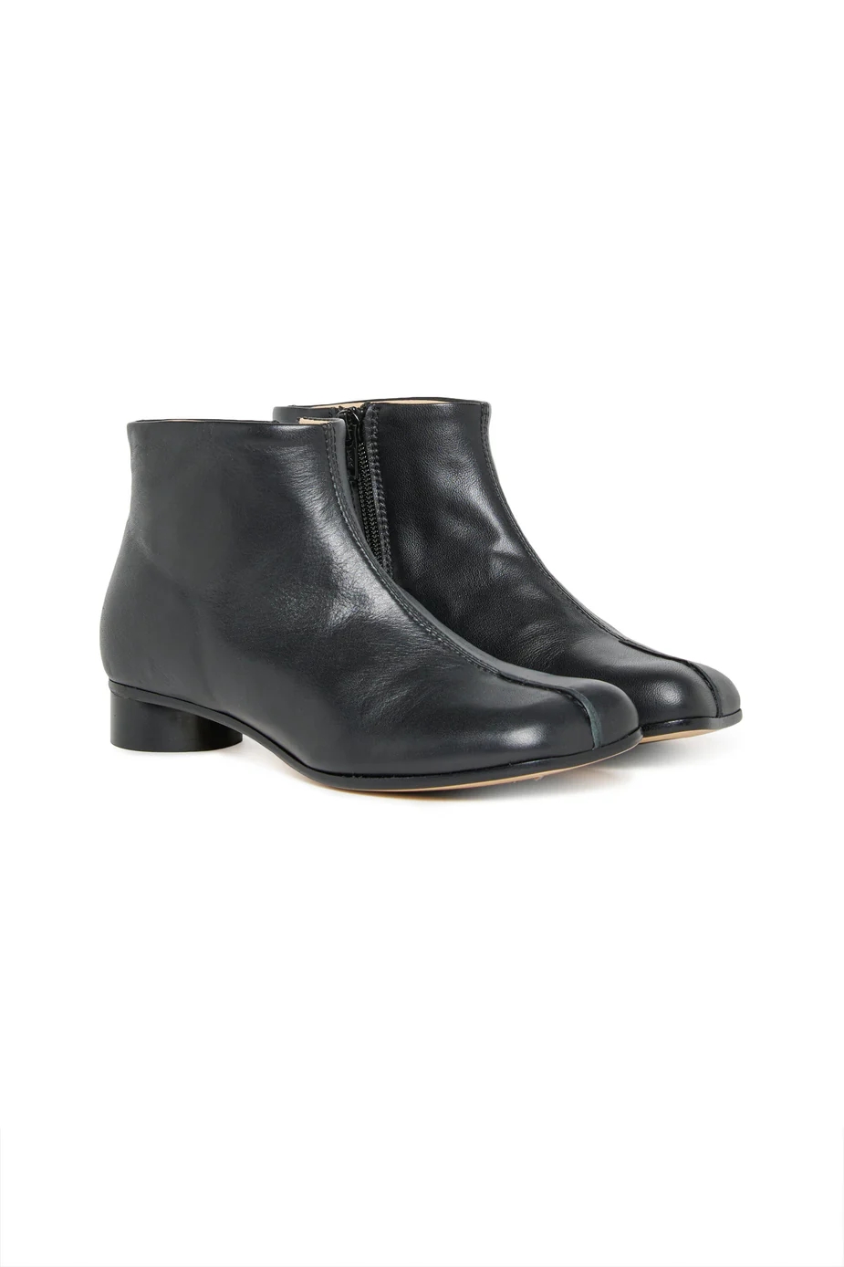 Stivali bassi in pelle con tacco cilindrico e cucitura in rilievo sulla punta. Pensati per accompagnare con eleganza ogni passo, dal quotidiano alle occasioni più formali.