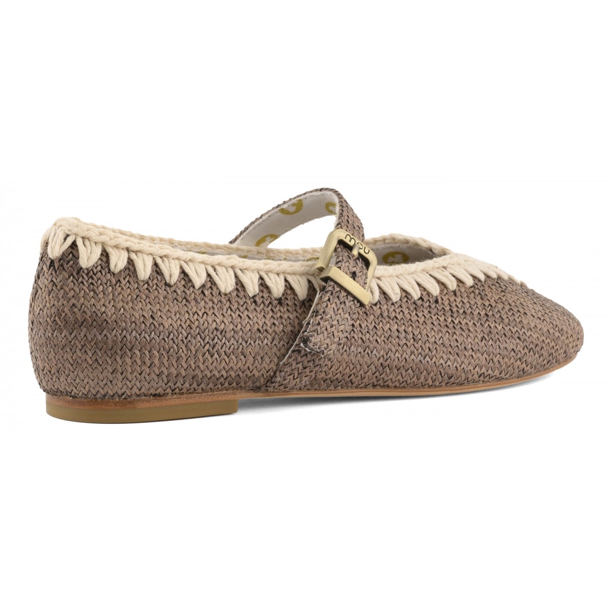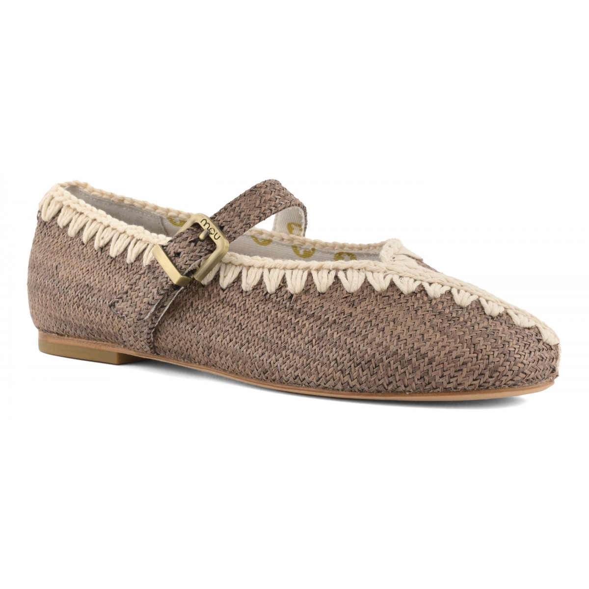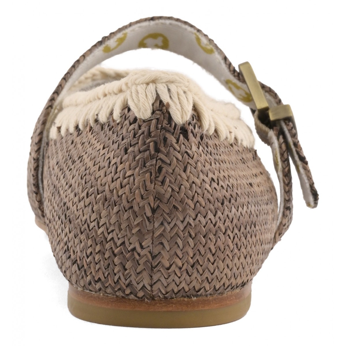 Con tomaia in tessuto effetto rafia, rivestimento in tela di cotone a righe bicolore e le cuciture all'uncinetto