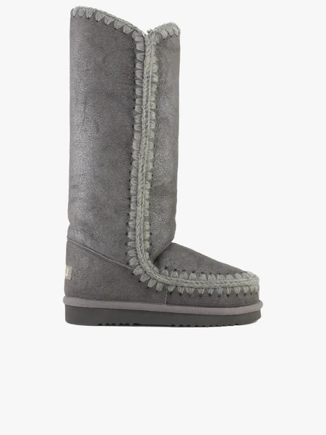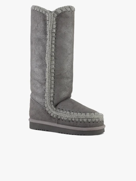 Eskimo boots grigi altezza 40 cm. Modello con punta tonda, altezza ginocchio e suola piatta.
