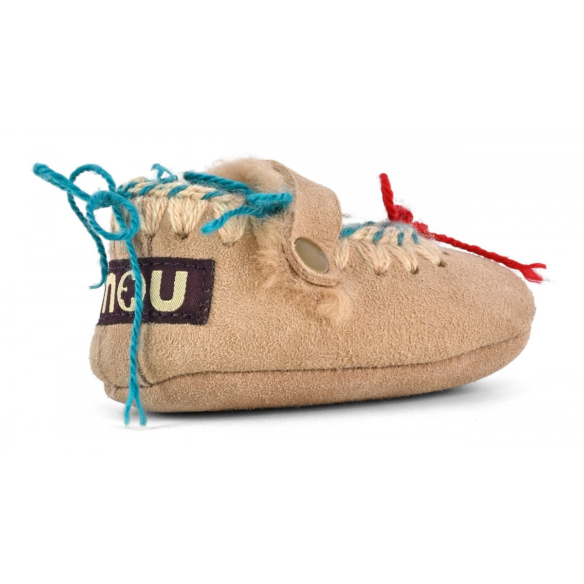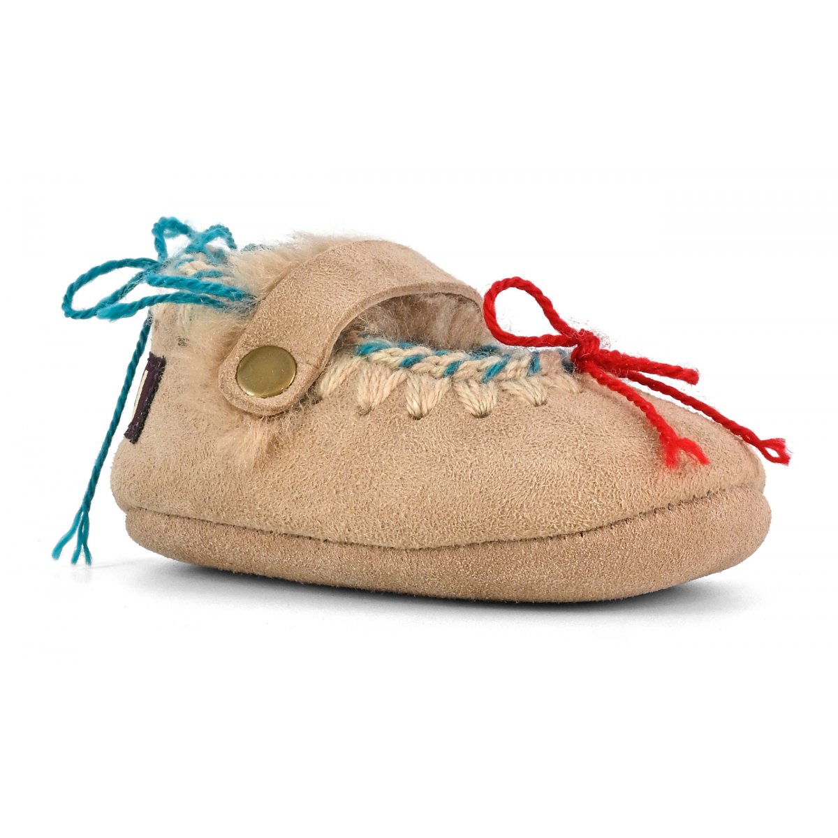 Eskimo infant ballerina realizzata a mano in vera pelle di montone double-face e cucitura in lana all'uncinetto distintiva di mou. Questo morbidissimo e confortevole stivaletto è rifinito con una suola in camoscio.