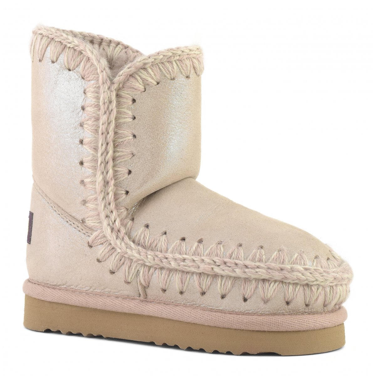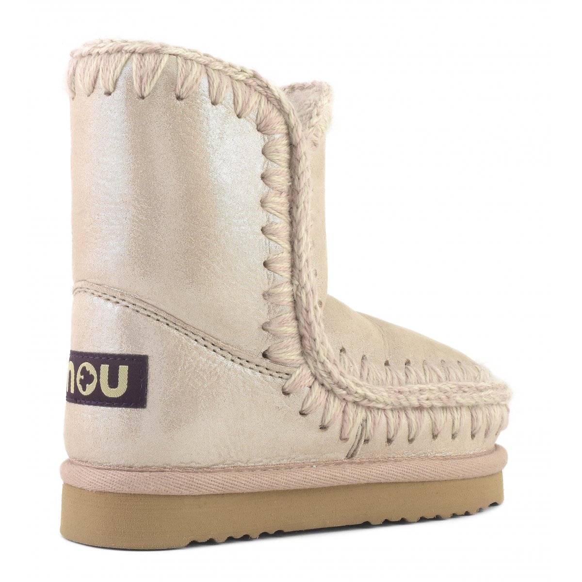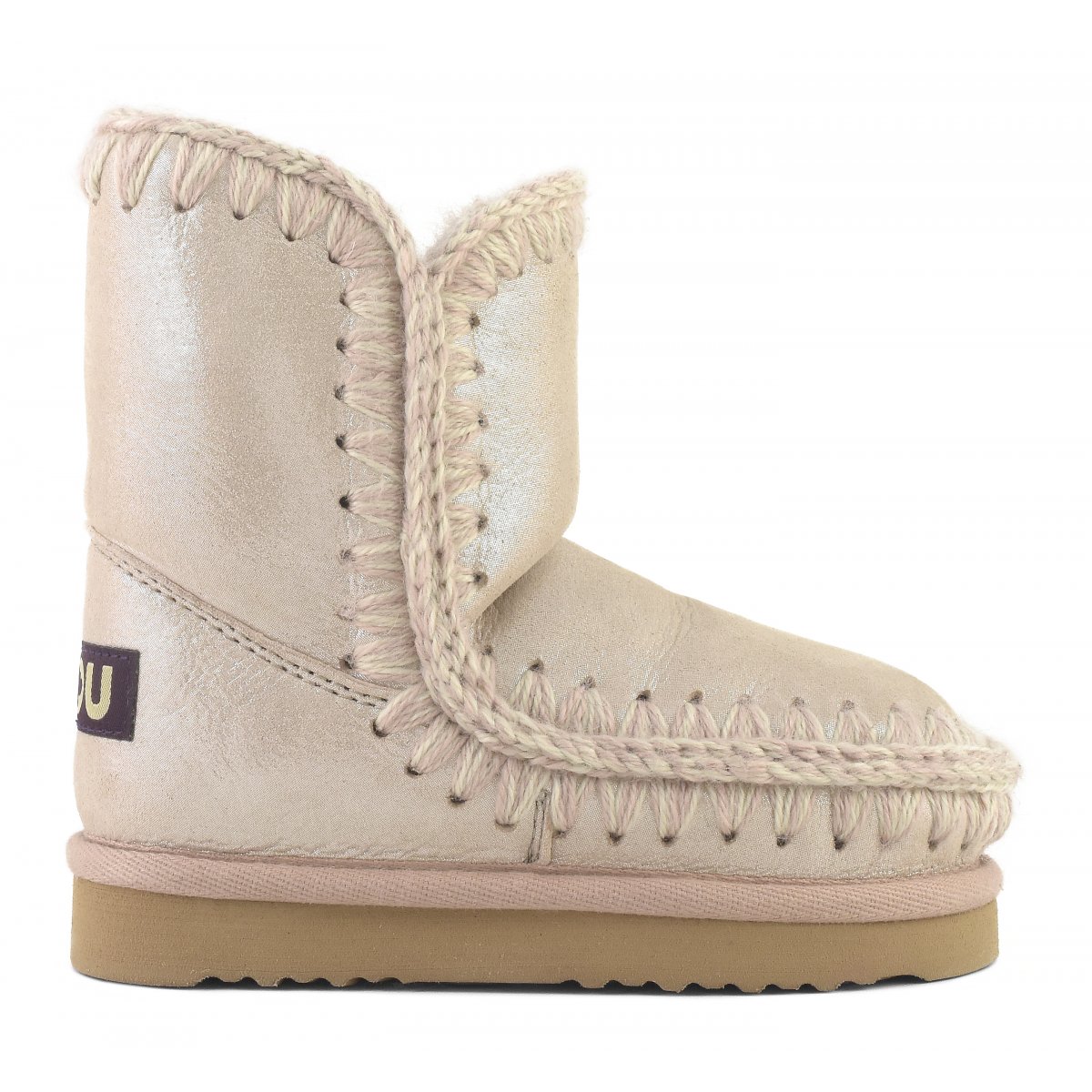 Rosa pastello metallizzato, realizzato con pelle di montone double-face estremamente calda, cuciture in lana all'uncinetto, tallone rinforzato e una suola esterna in EVA & gomma.