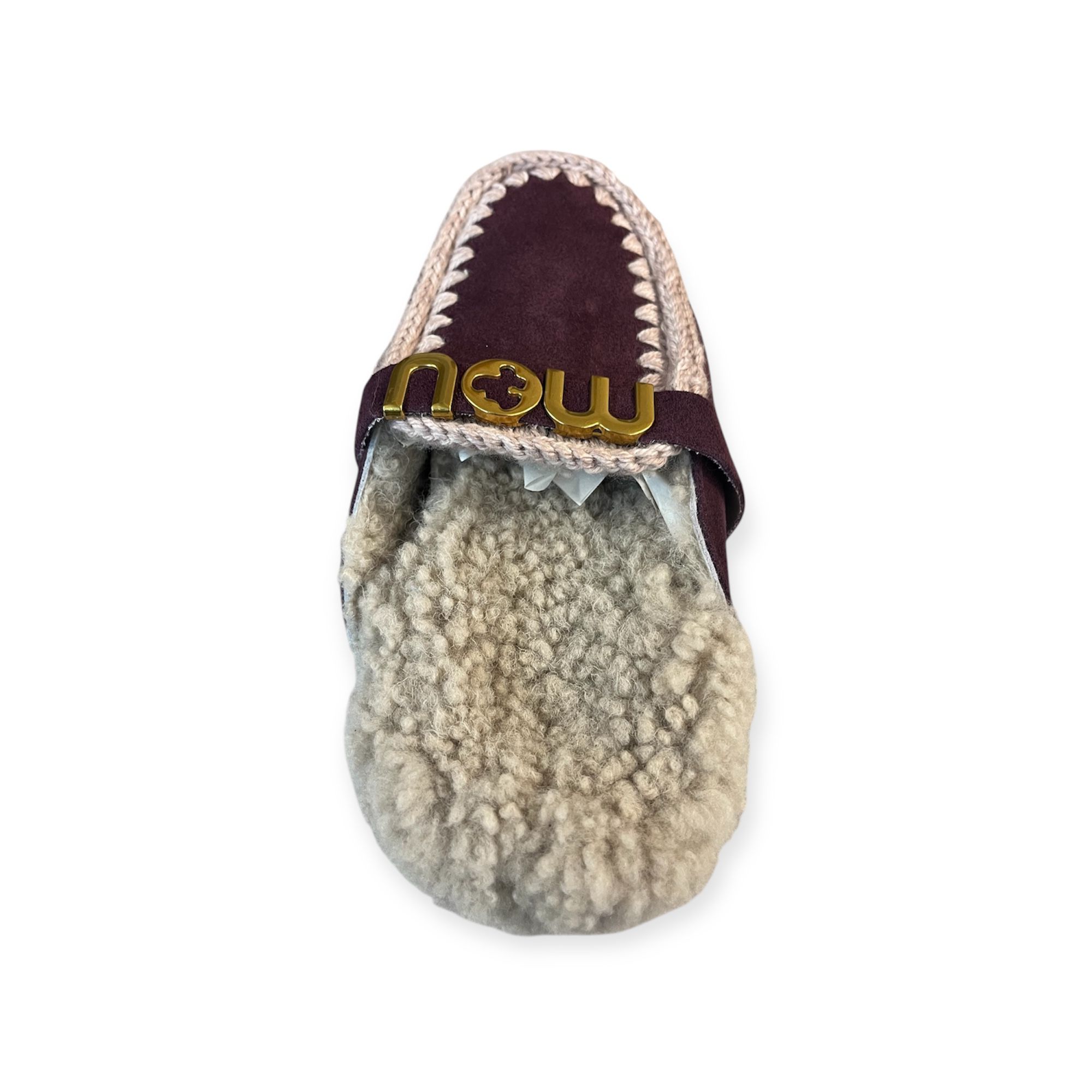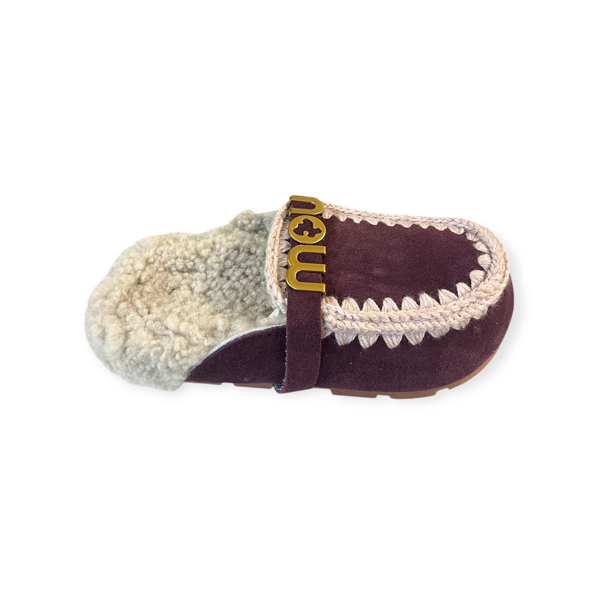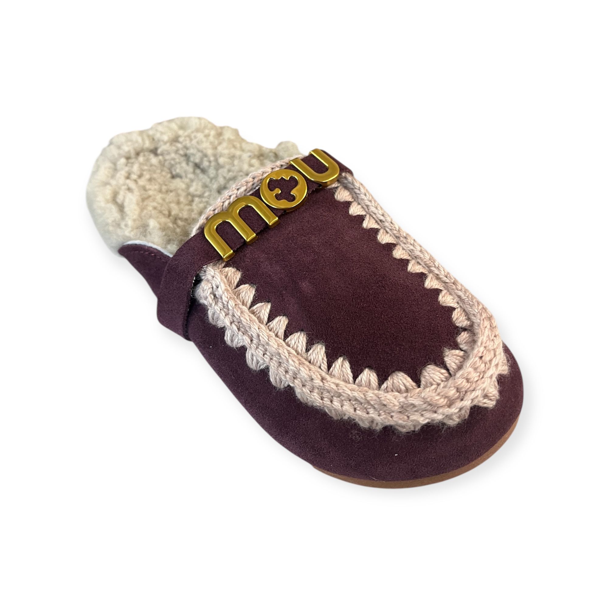 Eskimo slipper donna bordeauxcon dettagli in lana all'uncinetto distintivi di mou