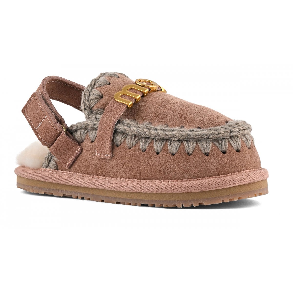 con cinturino alla caviglia e logo in metallo realizzata artigianalmente in vera pelle di montone double-face con gli inconfondibili dettagli in lana