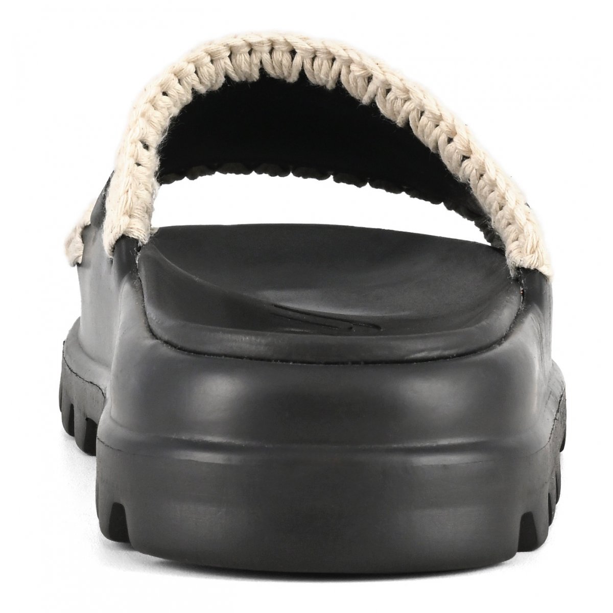 Realizzato artigianalmente in morbida EVA con dettagli in cotone all'uncinetto firmati mou, questo modello è completato da una soletta interna imbottita