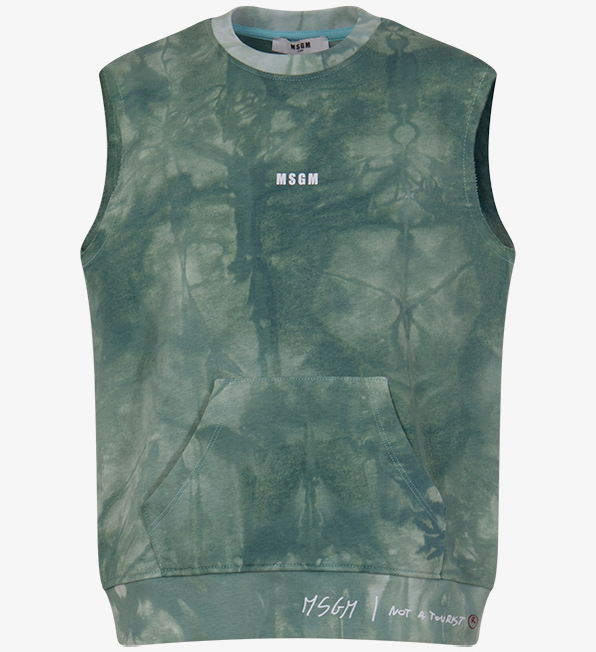 Felpa smanicata , con stampa msgm sul davanti , colore verde smeraldo