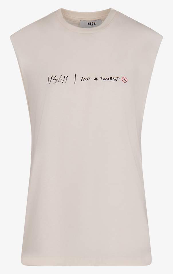 T-shirt smanicata con stampa, colore panna