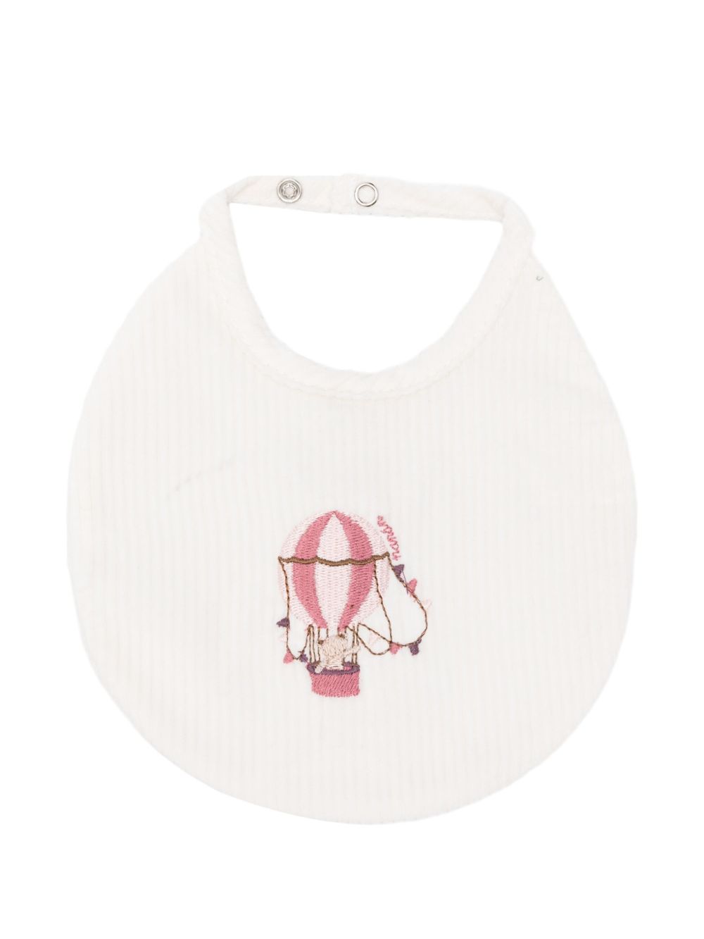 Proteggi il tuo piccolo con stile grazie a questo morbido bavaglio in tessuto a costine, delicato sulla pelle sensibile dei neonati. Il ricamo raffinato di un dolce orsetto in mongolfiera aggiunge un tocco tenero e originale, perfetto per accompagnare ogni momento della pappa con dolcezza.