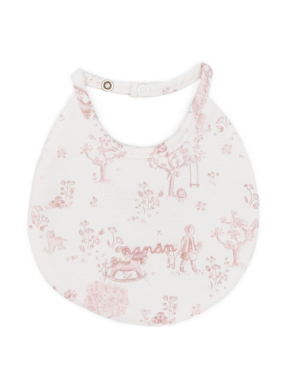 Bavaglino in popeline con allover. Il capo è provvisto di una chiusura con bottone automatico consentendo una vestibilità comoda e pratica.