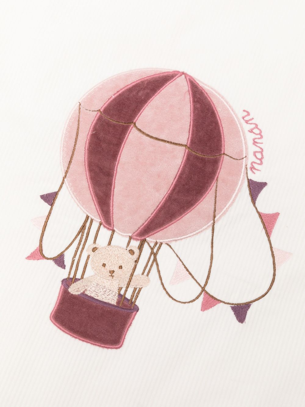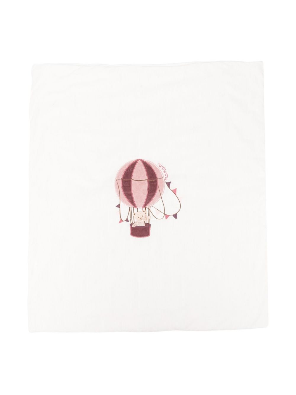 Avvolgi il tuo piccolo in morbidezza e tenerezza con questa coperta a costine, realizzata in un tessuto delicato e caldo, ideale per la pelle sensibile dei neonati. Il ricamo raffinato di un dolce orsetto in mongolfiera aggiunge un tocco di magia e dolcezza, perfetto per coccolare il tuo bebè durante i momenti di riposo o passeggio. Un accessorio indispensabile per garantire comfort e stile in ogni stagione.