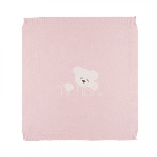 Morbida copertina in filo, impreziosita da un dolce orsetto.