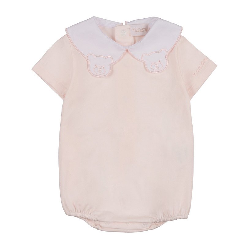 Grazioso body con colletto con orsetti. Abbottonatura posteriore.