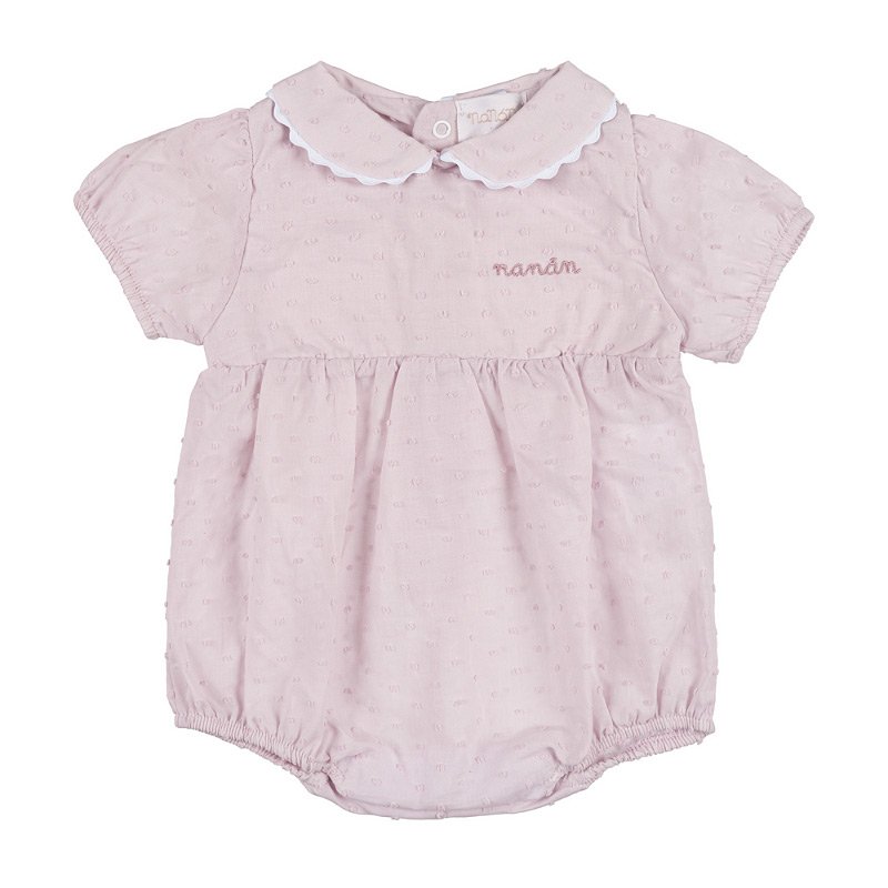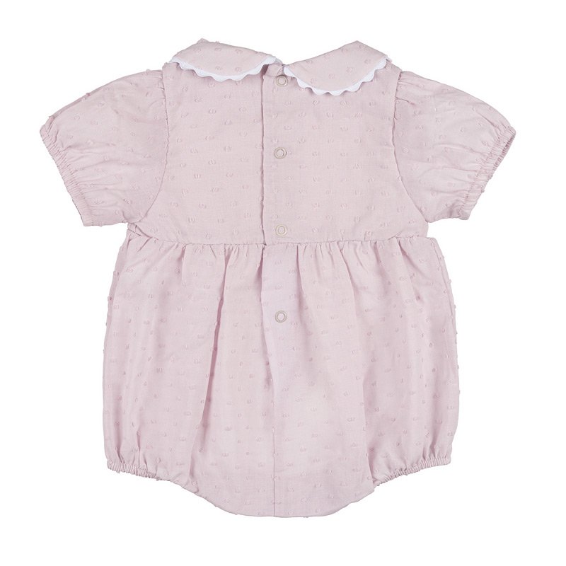 Grazioso pagliaccetto in plumetis c/colletto e passamaneria. Abbottonatura inferiore e posteriore.