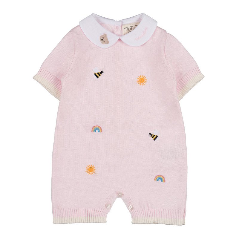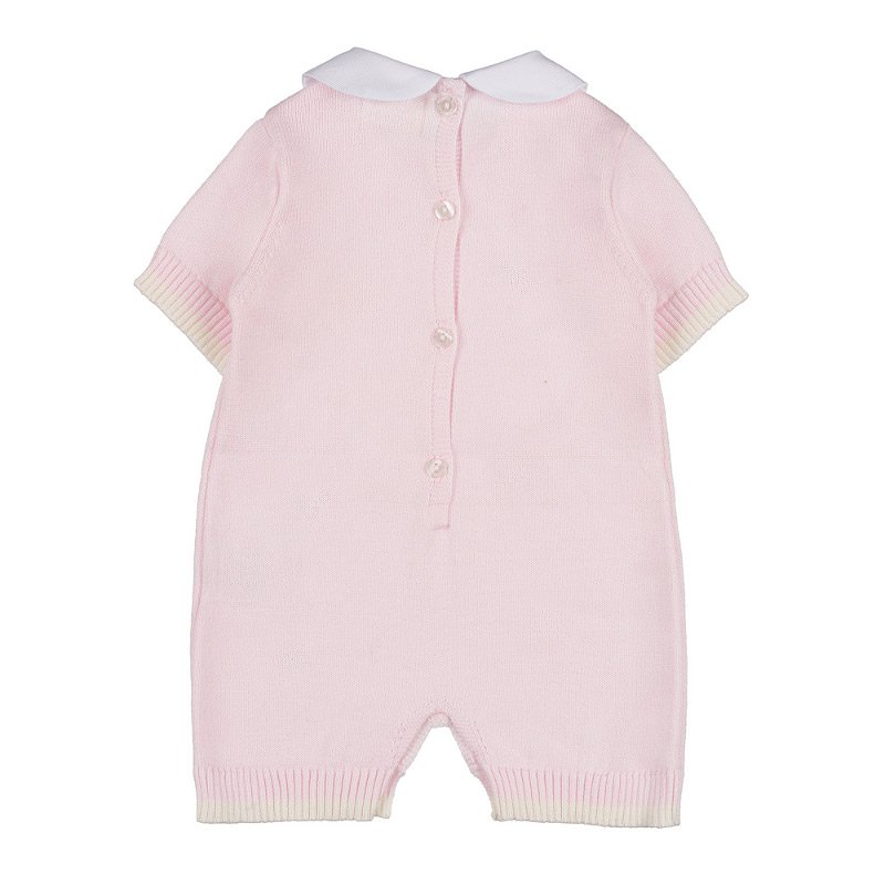 Tutina con ricamo in filo rosa mezza manica con abbottonatura sul retro.