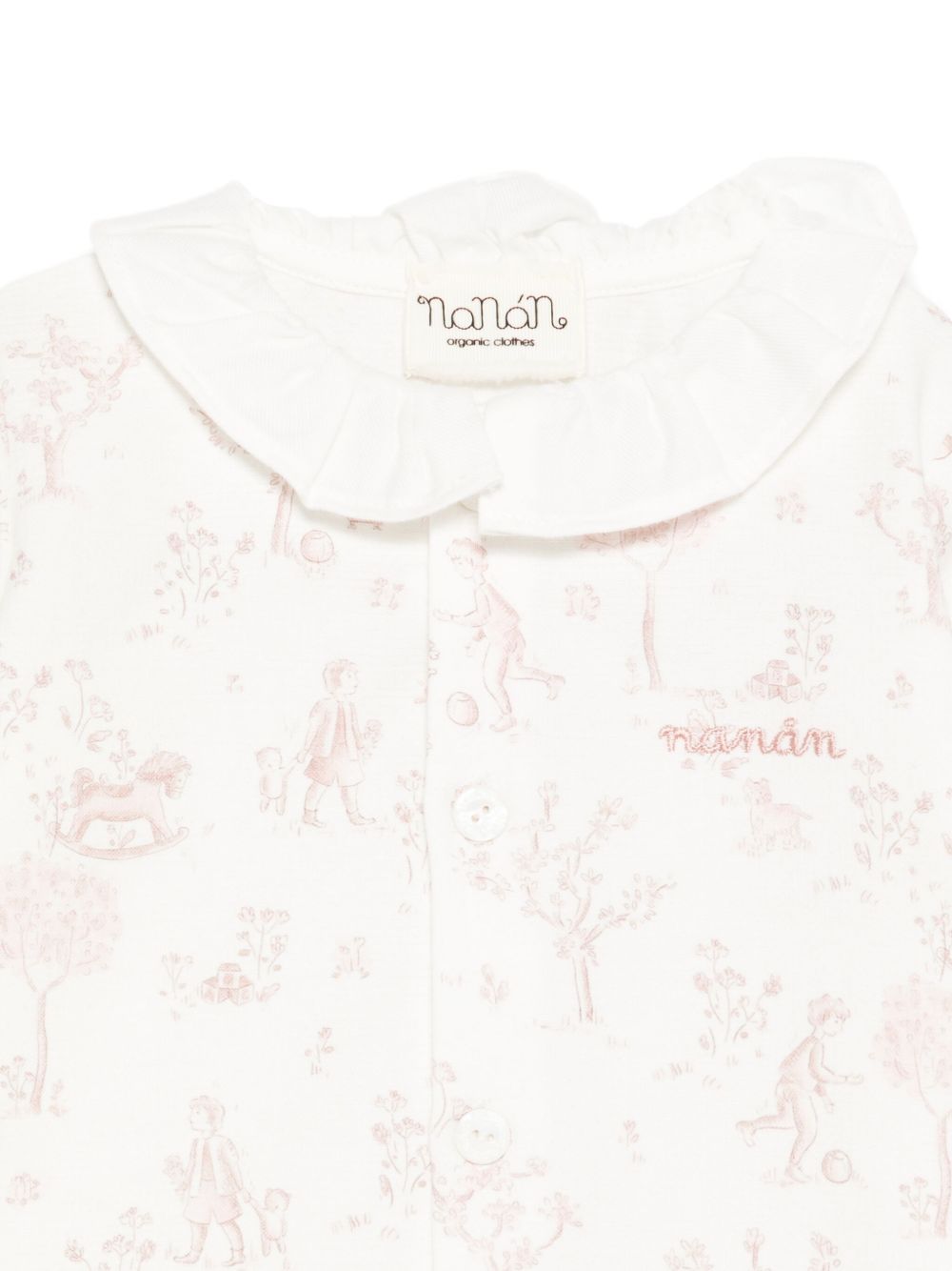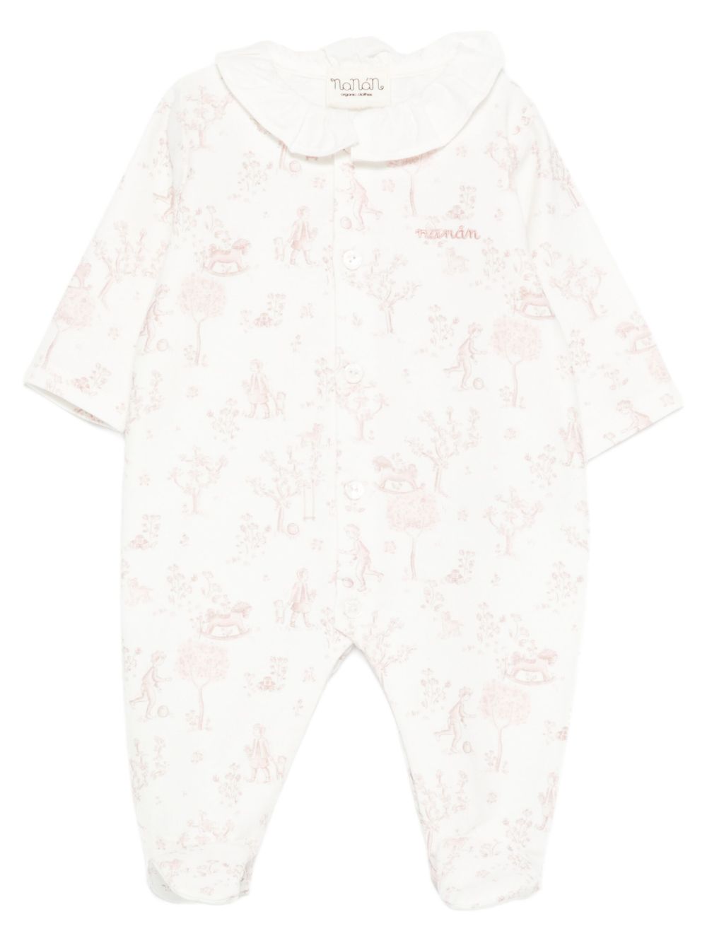 Tutina in caldo cotone , stampa con il rosa e colletto a smerlo in cotone
