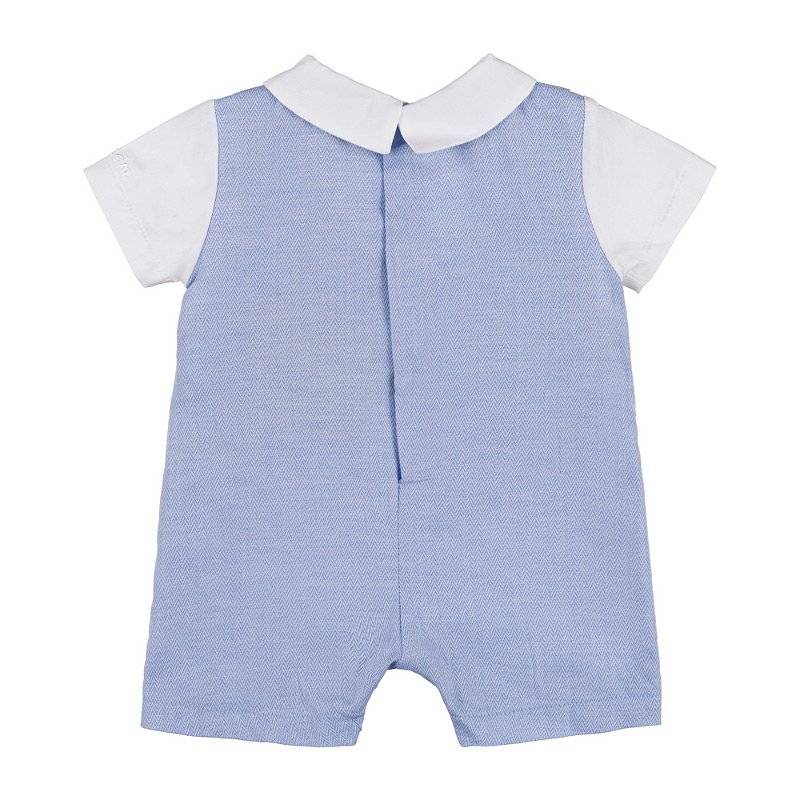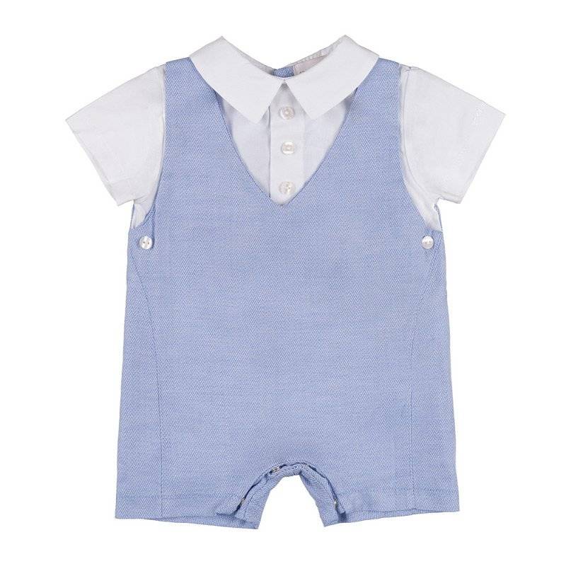 Tutina spigata pagliaccetto con salopette spigata. Abbottonatura posteriore e inferiore.