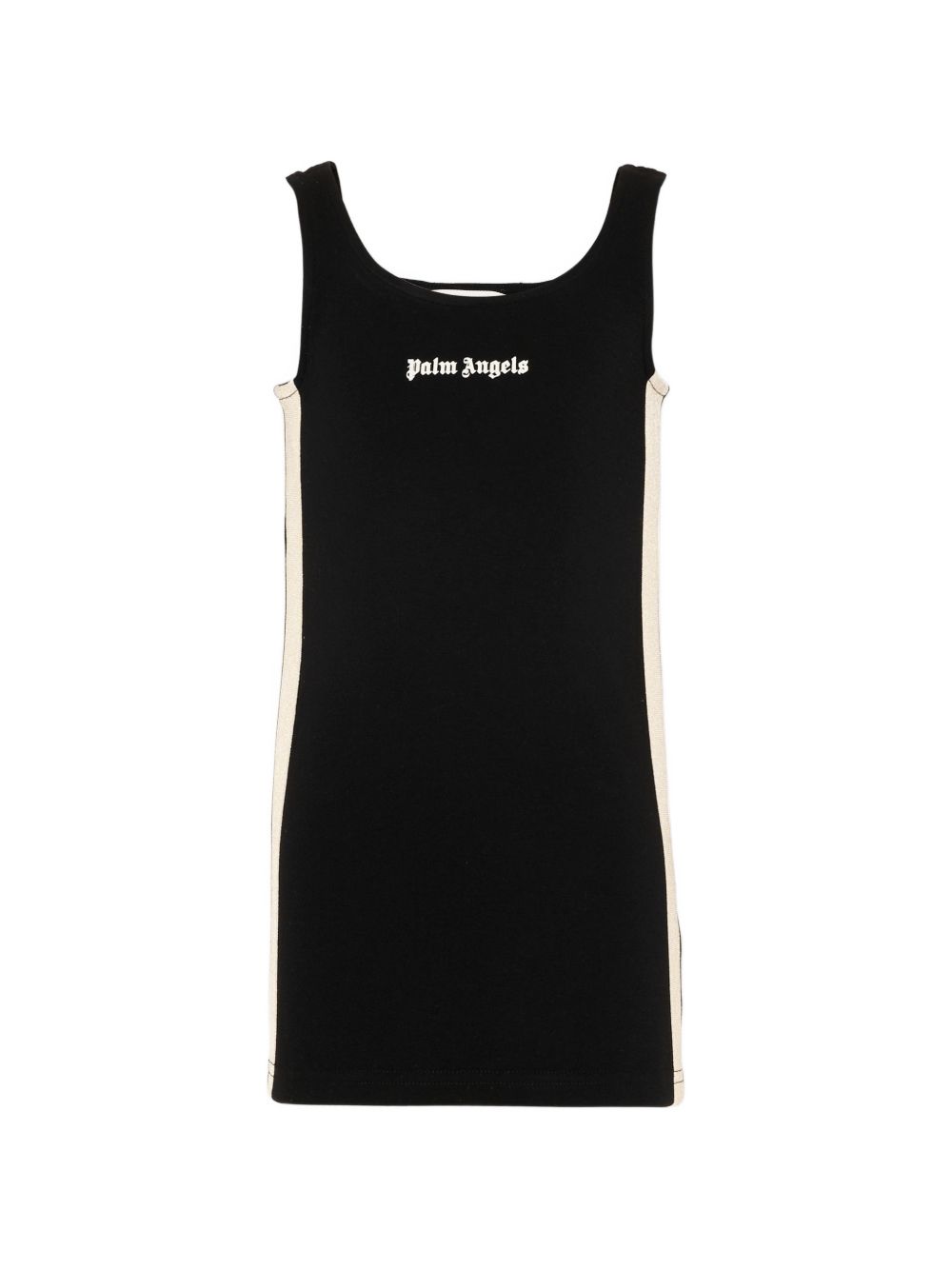 Abito girocollo, senza maniche, con stampa logo e bande laterali a contrasto