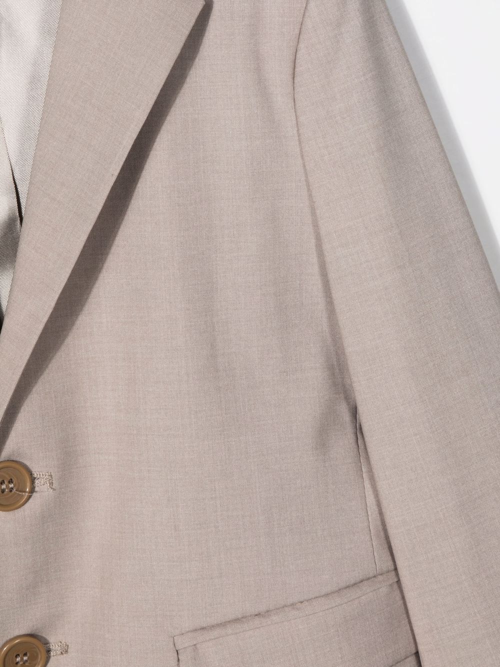 Spacco posteriore, revers classici, chiusura frontale con bottoni, maniche lunghe e due tasche frontali con pattina.