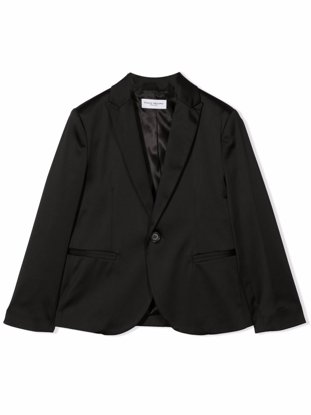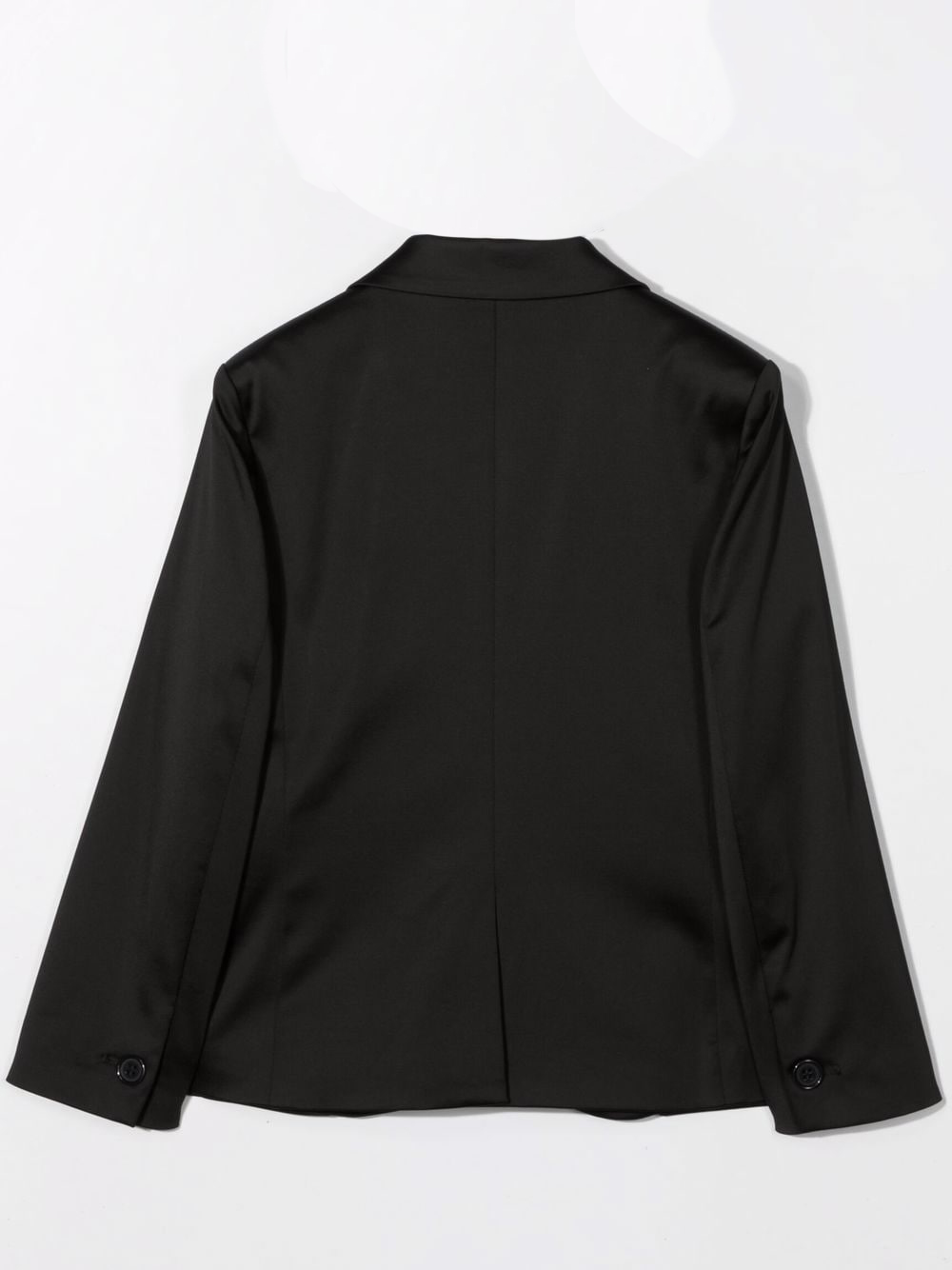 Spacco posteriore, revers classici, chiusura frontale con bottoni, maniche lunghe e due tasche a filetto frontali. Colore: nero.