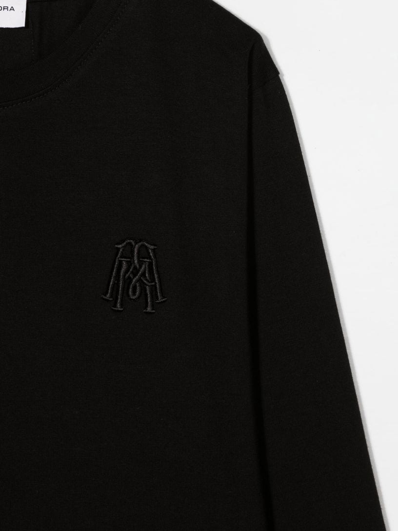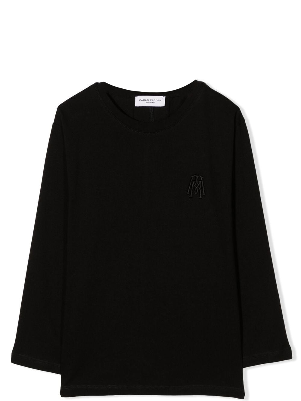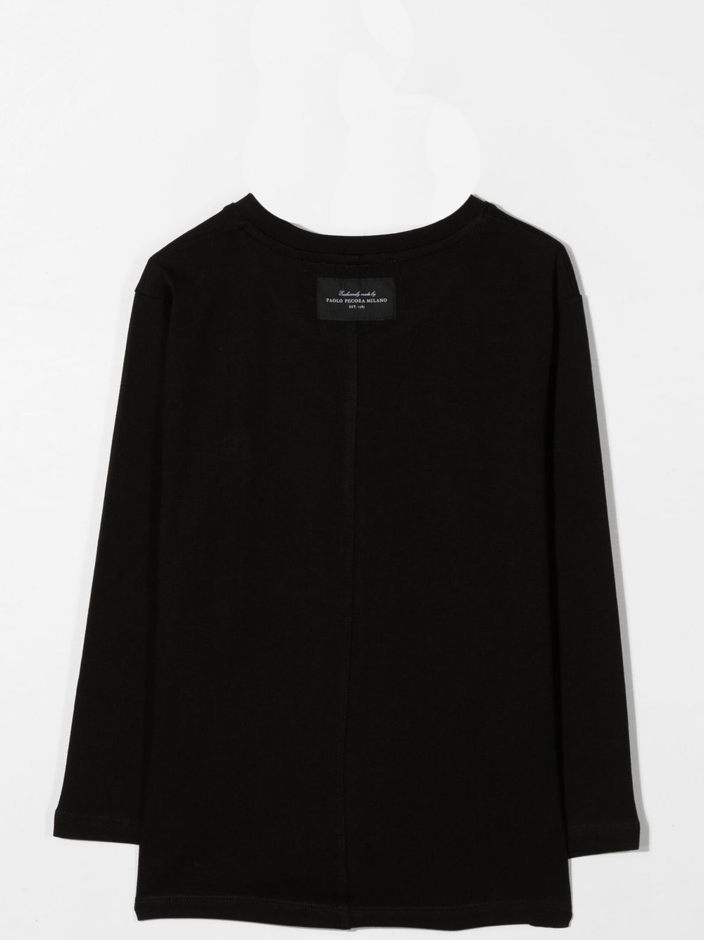 Nero, cotone, scollo rotondo, maniche lunghe e orlo dritto.
