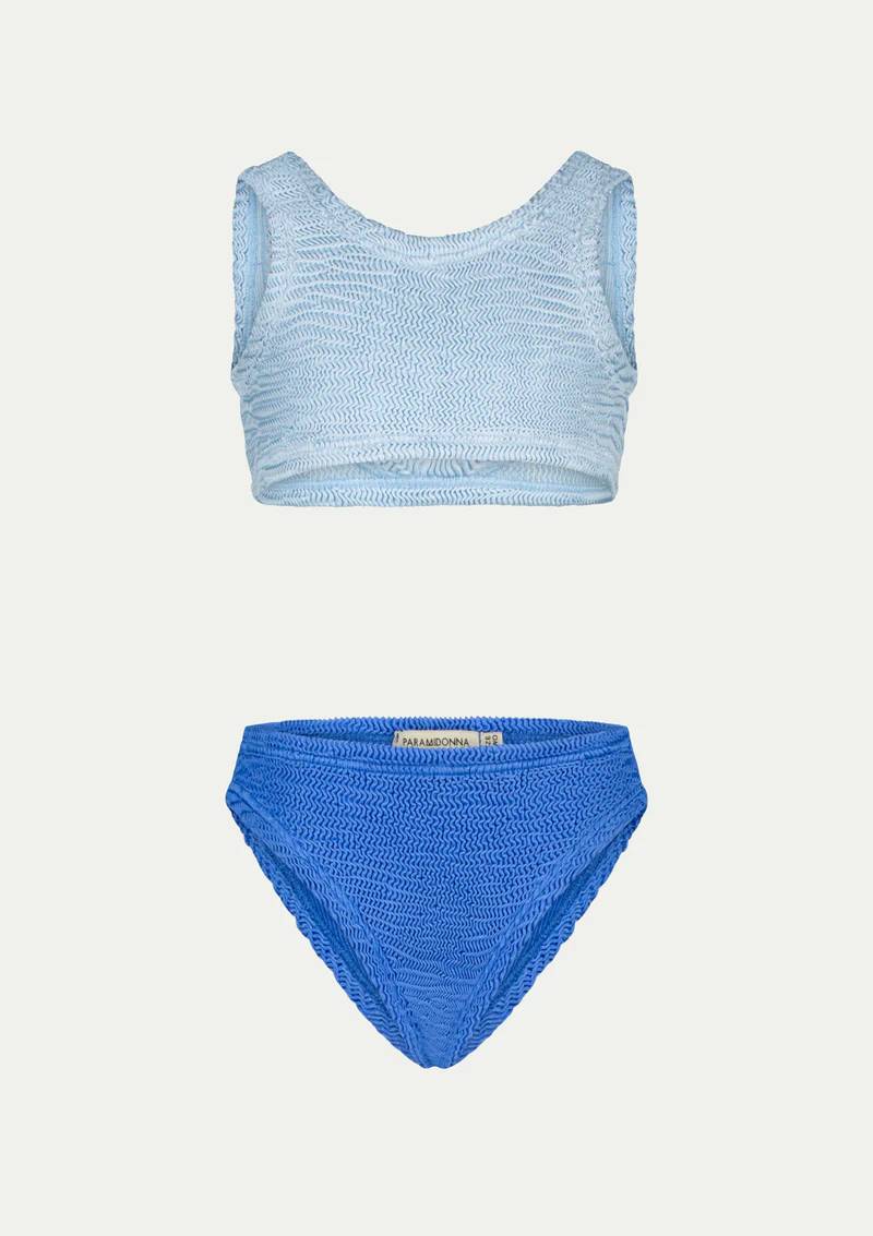 Costume 2 pezzi elasticizzato azzurro e blu
