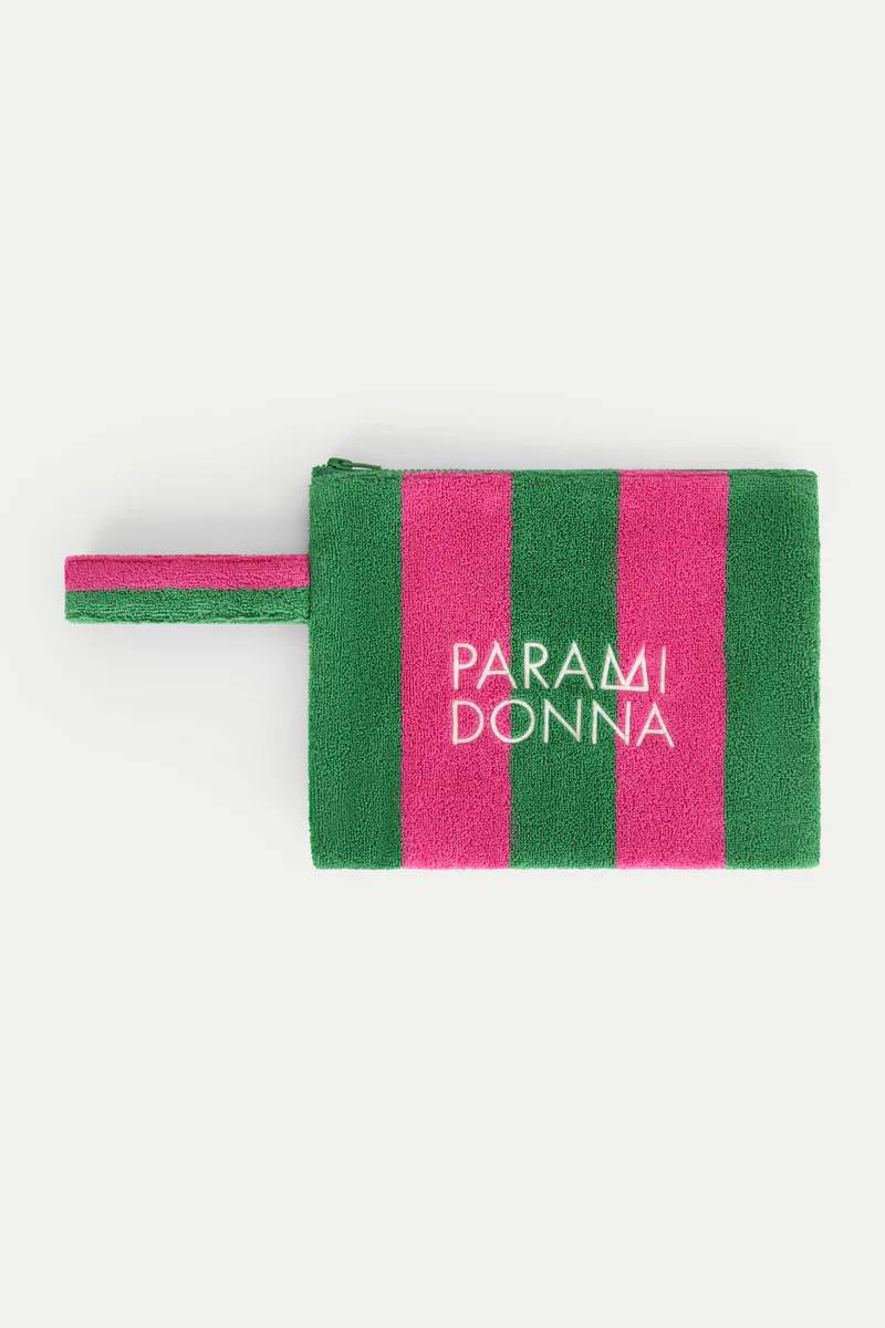 Pochette con logo rigata verde e fucsia