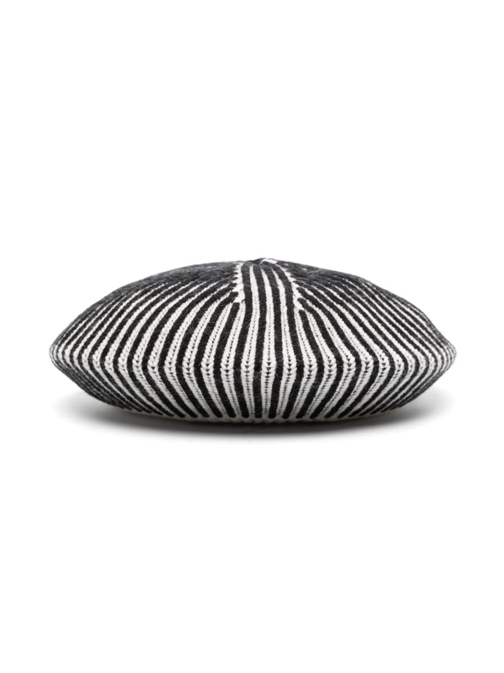 Berretto lavorato a maglia a righe con logo ricamato di PINKO KIDS caratterizzato da struttura lavorata a maglia bianco sporco e nero, motivo a righe verticali, logo ricamato sul davanti, bordo a coste e stile pull-on.