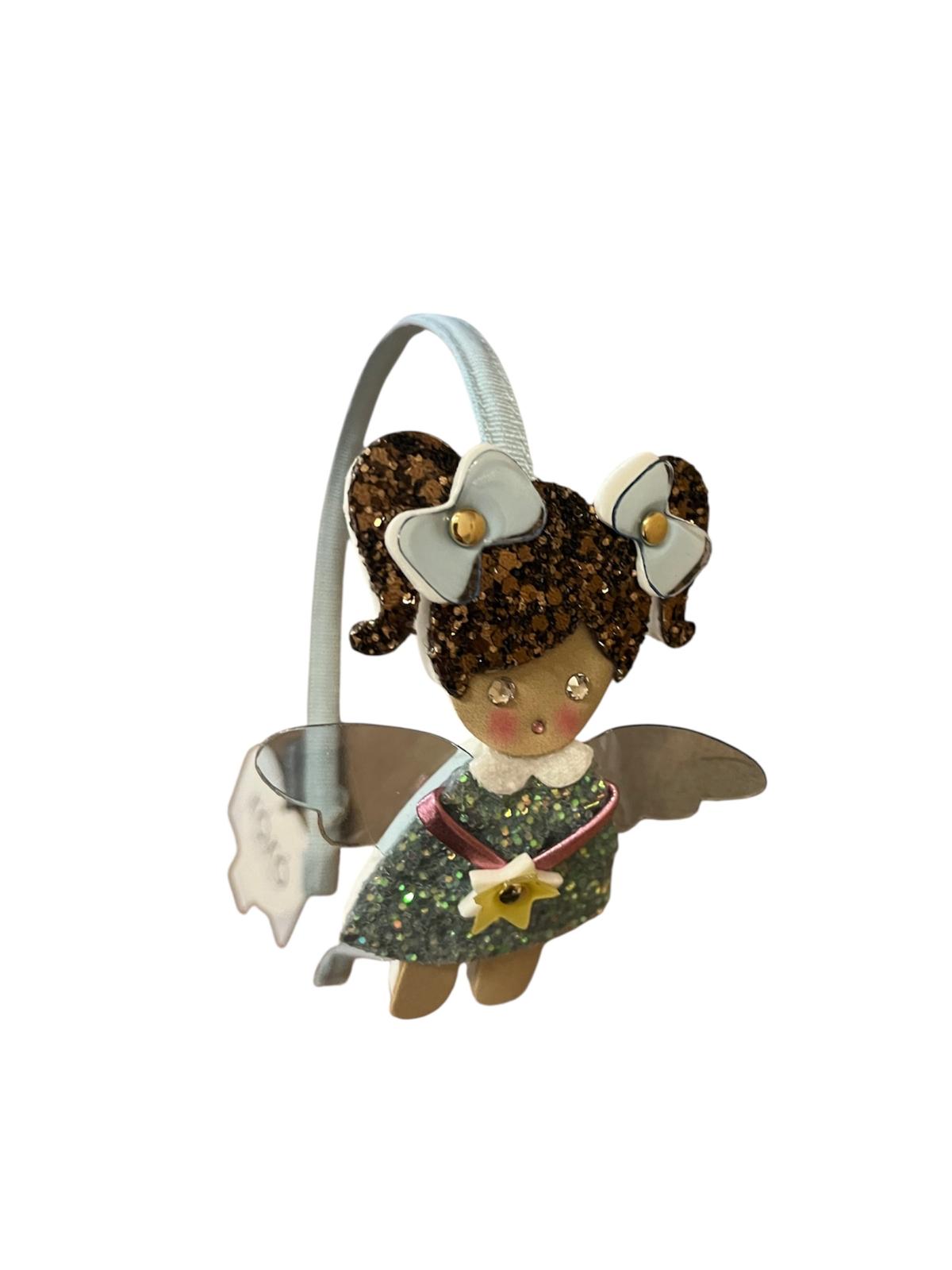 Cerchietto con applicazione fatina capelli marroni , color celeste