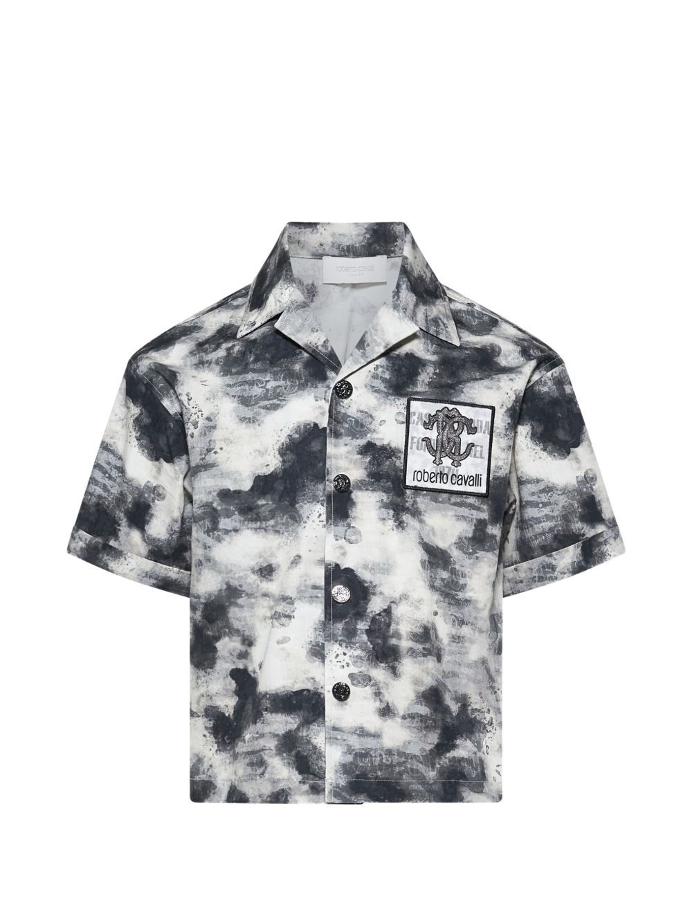 Camicia con logo bianca e nera, con taschino e scollo a v mezza manica