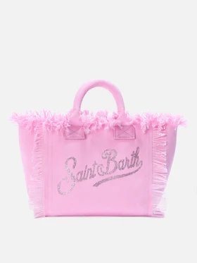 Borsa Media in canvas con strass e tracolla