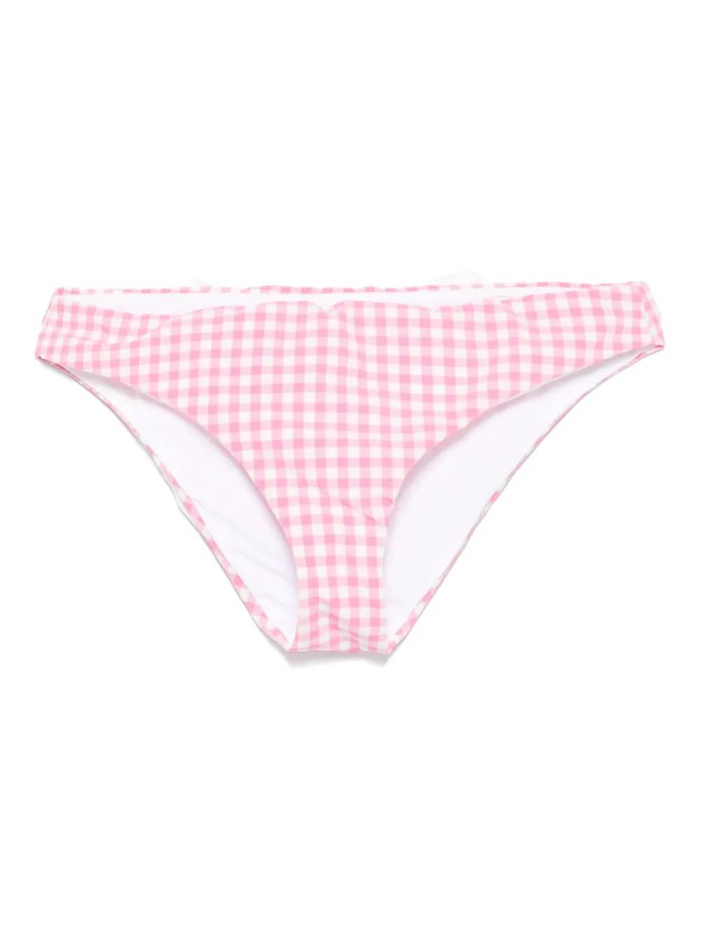 Costume con fiocco a quadri con fiocco in sangallo bianco.
