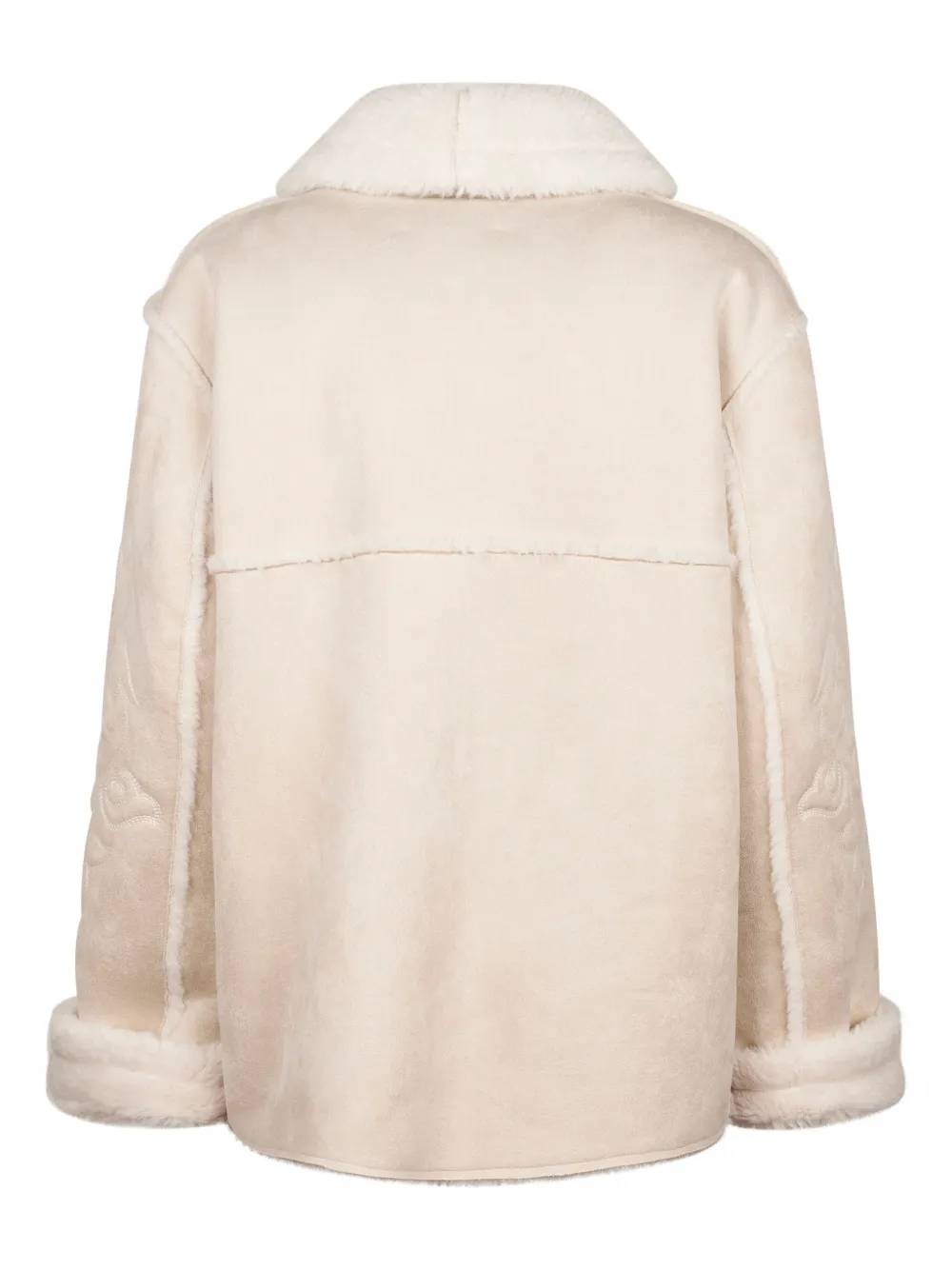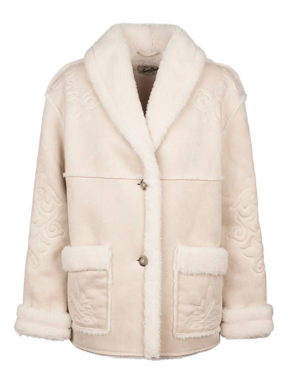 Colletto con bottoni color crema, tasche anteriori, dettagli ricamati